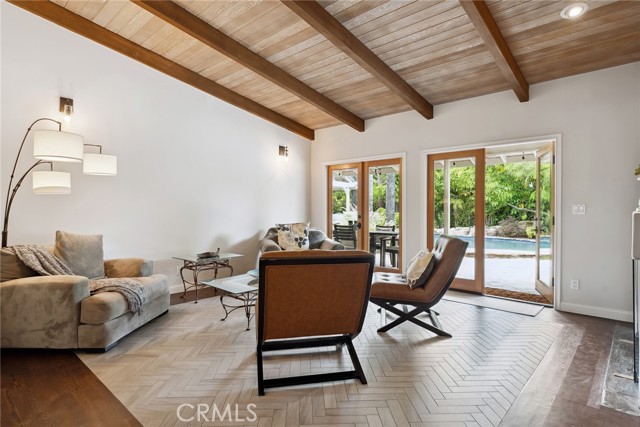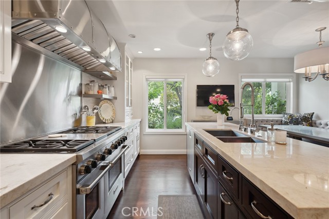 Stunning Tarzana Family Estate South of the Boulevard. Welcome to this gorgeous, over 4,600 sq. ft. family home located in one of Tarzana’s most sought-after neighborhoods, south of the Boulevard. Boasting six spacious bedrooms plus a dedicated home office, this beautifully updated residence offers the perfect blend of luxury, comfort, and versatility. The heart of the home is a remodeled gourmet eat-in kitchen, complete with high-end Wolf appliances, a large center island, and seamless flow into the elegant dining and living areas. Accented by striking wood beam ceilings and a dual-sided fireplace, the living space exudes warmth and charm, ideal for both family gatherings and entertaining. Enjoy movie nights or casual get-togethers in the expansive family room featuring a wet bar and surround sound system. Rich hardwood floors run throughout the home, adding timeless elegance. Downstairs, you’ll find a secondary primary suite with a spa-like bathroom, ideal for guests or multi-generational living. A sixth bedroom offers flexibility for a gym or additional ADU potential, and the private home office provides a quiet workspace with endless possibilities. Upstairs, the thoughtfully designed kids’ wing includes three generous bedrooms, while the luxurious primary suite offers dual walk-in closets, a spa-style bathroom, and a private balcony overlooking the lush backyard. Step outside to your own resort-style oasis featuring a sparkling pool and spa with tranquil water features, a large grassy area, covered patio, built-in BBQ, pergola, and a sports court—perfect for making memories year-round. This exceptional property combines function and style in an unbeatable Tarzana location. Don’t miss the opportunity to make it yours!