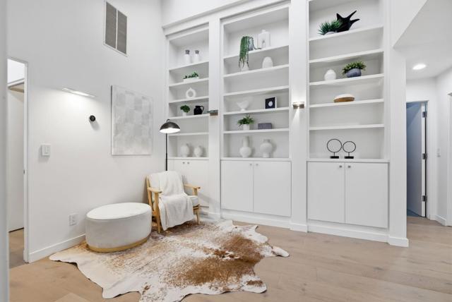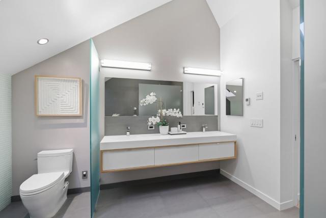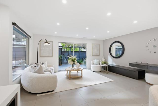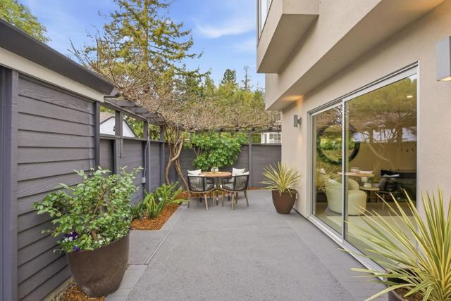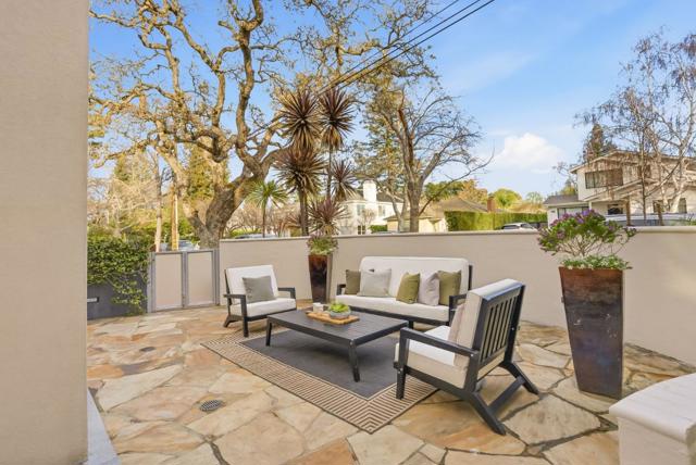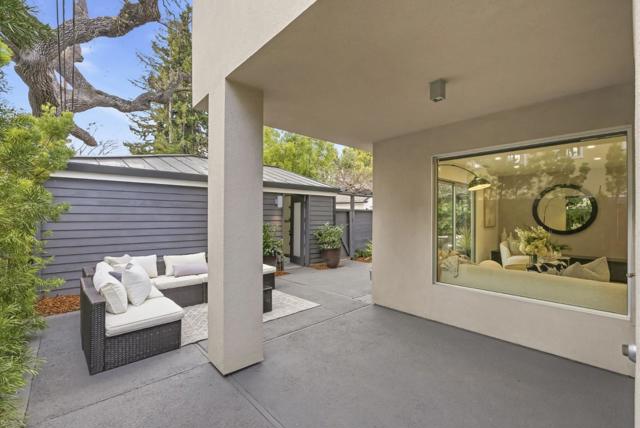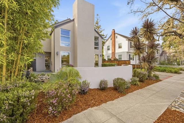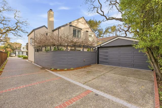 Contemporary home in Old Palo Alto just one mile from downtown University Ave. Architecture by Mary Mayden with exceptional attention to detail on two levels, all with abundant natural light. Effective Year Built: 2013. Wood floors on both levels with heated tile floors in the great room. A front curved courtyard extends the living/media room outdoors to a koi pond and bamboo garden. The kitchen is sleek and modern with island counter seating and separate wine bar. Glass doors open to the wraparound private rear gardens. Upstairs, 4 bedrooms, including the primary suite, radiate from a central loft lined with extensive library storage and perfect for office space. A detached 2-car garage with EV charging offers optional living space opening to the rear terrace via French door. Excellent Palo Alto schools.