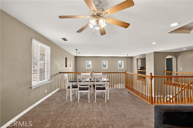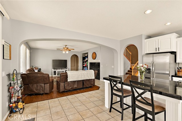OWNED SOLAR!!! Reduce your electricity bill with owned solar and enjoy your private backyard retreat featuring a sparkling pool with a beautiful waterfall. The outdoor space also offers a covered patio, a gazebo with electicity, extended stamped concrete, and two storage sheds—perfect for relaxing or entertaining. Inside you are greeted by a living and dining room combination. The kitchen opens to the family room with wood laminate flooring and a cozy gas fireplace, and features granite tile countertops, tile backsplash, center island, abundant cabinetry, and stainless steel appliances. The main level includes a bedroom and full bath, spacious laundry room, and a three-car attached garage. Upstairs offers updated carpet throughout, a versatile loft with floor outlets, and three additional bedrooms including a generous primary suite with sitting area. The primary bath features dual vanities, a soaking tub, separate shower, and a large walk-in closet. Energy efficiency, functional space, and a resort-style backyard make this home a must-see.