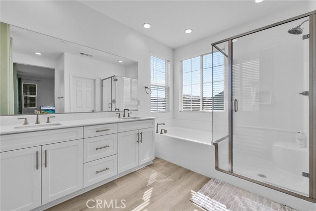 Welcome to this newly home located in the top-rated Etiwanda School District. Built in 2023, This home Nestled in a gated community with a sparkling pool/Spa and family-friendly amenities. This residence provides modern comfort and elegant upgrades throughout. The open concept style home offers great space and natural lights. The spacious kitchen showcases upgraded soft-close cabinets, back splash, quartz countertops, and luxury vinyl flooring extending throughout the main level. In addition, it includes a three-car side-by-side garage with two independent garage doors, providing ample parking and storage space. The primary suite offers a soaking tub, separate shower, dual vanities, and a private toilet room. The home is upgraded and move-in ready condition. Conveniently located within short distance to the school, shopping center, dining, and easy access to nearby 210 and 15 freeway — this upgraded resident perfectly combines style, comfort, and location!