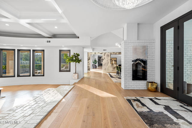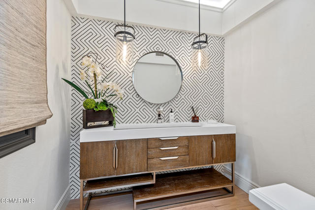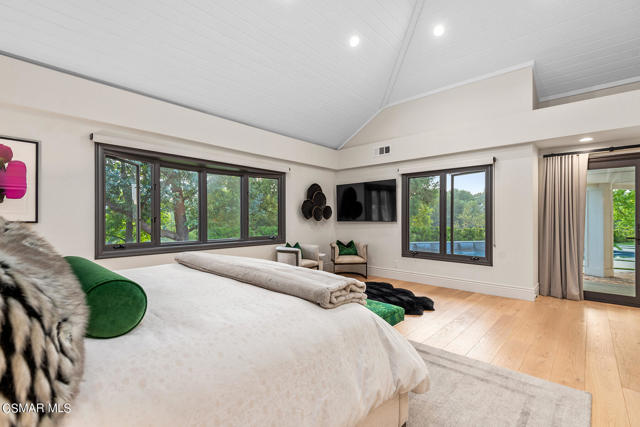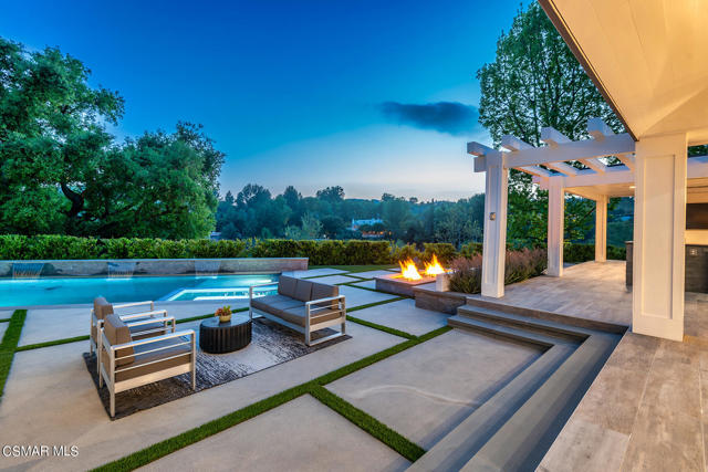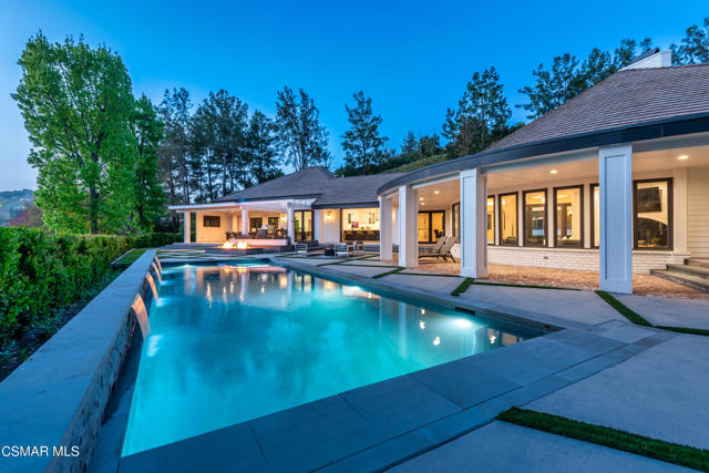 Completely re-imagined designer perfect contemporary with a prime location in guard gated North Ranch Country Club Estates! Ideally set behind private gates atop 2.75 acres is this incredibly special SINGLE STORY estate with total privacy and expansive fairway and mountain views. An absolutely epic showplace property professionally remodeled inside and out using the very finest finishes. Features include an expanded open concept floor plan with newer center island kitchen which opens seamlessly to the family room. The primary suite is graced with two walk in closets and a beautiful bathroom. There are three additional en-suite bedrooms each with remodeled baths. The dramatic entry opens to a great room with custom ceilings and and an abundance of windows for natural light. The rear grounds have also been transformed with a newer pool, firepit, covered patios, manicured lawns and total complete privacy with views! Other amenities include an all new massive motor court, expanded laundry room, Fleetwood pocket doors and much more. This property checks every box. Single story, open concept floor plan, beautifully re-imagined throughout, private, views, stunning backyard and guard gated community!