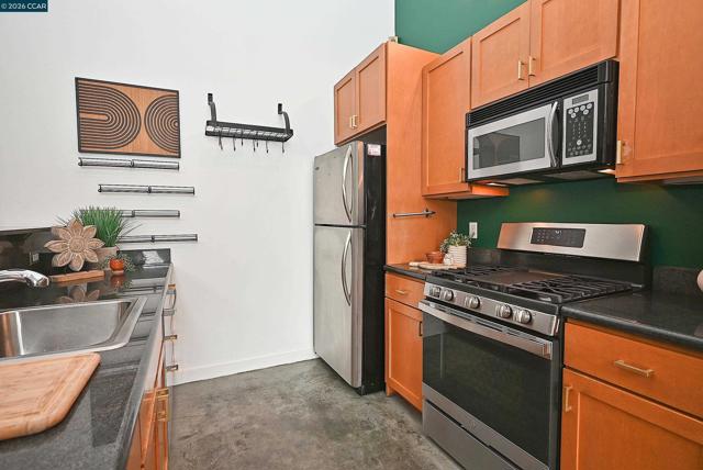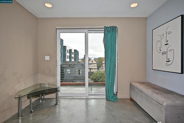 This contemporary top floor loft is perfect for city living! The open floor plan is enhanced by large windows, allowing for an abundance of natural light. Polished cement floors, high ceilings, stainless-steel appliances, two full baths, in-unit laundry and a beautiful fireplace. Adjacent to the living room, there is an office with stowaway queen size Murphy bed that doubles as a second bedroom, providing flexibility for buyers who work from home or need a second bedroom. The loft also boasts a generous balcony with city views, perfect for enjoying the outdoors. Additionally, the unit includes one dedicated parking space and an extra storage closet, ensuring ample room for belongings. Perfectly situated for commuters, this loft offers easy access to freeways, the BART station, and the Ferry Terminal, making commuting to San Francisco a breeze. Enjoy the convenience of nearby shopping, dining, and entertainment options. Located just minutes away from downtown Oakland, Uptown, and the vibrant Jack London Square! Walk score of 96!