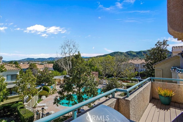 Rare Top-Floor End Unit with Loft & Mountain Views! Welcome to the most desirable floor plan in Princessa Estates. Positioned as a private top-floor end unit, this 2-bedroom + loft residence offers 1,195 SQFT of bright, voluminous living space. Unlike standard condos, the dramatic vaulted ceilings and oversized windows flood the home with natural light, highlighting the versatile loft—perfect for a professional home office, creative studio, or 3rd bedroom. The open-concept layout features a living area anchored by a fireplace, a dedicated dining space, and a private balcony overlooking the pool with unobstructed mountain views. Key Property Features: Maximum Privacy: No neighbors above you; quiet end-unit location. Modern Amenities: In-unit laundry, central HVAC, and newer carpeting. Parking & Storage: 2-car tandem garage with significant extra storage space. Minutes from the 14 Freeway, Costco, and the newest dining/shopping hubs in Canyon Country.