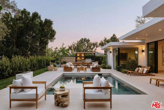 A rare ocean-view architectural estate where Scandinavian warmth meets iconic mid-century design, The Glenmere House offers 4 bedrooms and 4 bathrooms across approximately 3,048 square feet on an 8,331-square-foot lot. Fully rebuilt and reimagined by Montalba Architects (Nobu, SoHo House), the residence blends heritage architecture with uncompromising modern luxury, surrounded by serene landscape design from Stephen Billings. Set on a coveted cul-de-sac in Brentwood's sought-after North of Sunset location near Crestwood Hills Park and Kenter Canyon School, the home showcases soaring 12-foot ceilings, Fleetwood thin-line glass walls, and steel beam construction that deliver both dramatic scale and structural integrity while framing sweeping coastal views. Designed for effortless indoor-outdoor living, expansive entertaining spaces open to a private yard featuring a heated pool with integrated spa, firepit, outdoor BBQ, and tranquil garden moments including koi ponds and curated designer lighting. The gourmet kitchen is appointed with a six-burner Viking stove, Sub-Zero refrigerator, double oven, and breakfast nook, while formal living and dining areas are enhanced by a double-sided fireplace and refined architectural detailing. The primary suite feels like a five-star retreat, offering generous closet space, a spa-inspired bath with steam shower, and direct access to the backyard. At the pinnacle, an extraordinary 1,100-square-foot rooftop deck is designed for sunset entertaining and panoramic ocean vistas. Additional highlights include custom white oak millwork, Toto fixtures, a Control4 smart home system, gated entry, and a two-car garage. Fully permitted and turnkey, The Glenmere House is not just a home it's a statement. Brentwood living at its finest.