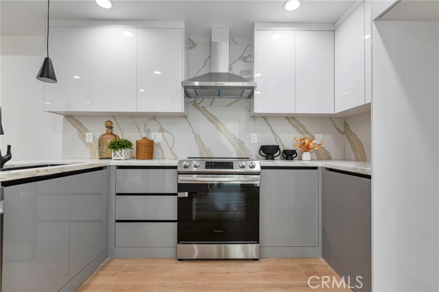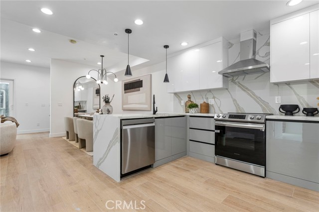 NEW CONSTRUCTION 3 bed, 2.5 bath, three-story townhome with sky deck at the GATED community, "Welkin 223". Gourmet kitchen with energy-efficient stainless steel electric range with hood + dishwasher, and designer cabinets. Upgraded laminate flooring throughout the home. Large primary suite with walk-in closet, balcony, and ensuite bathroom featuring an oversized glass shower and stand-alone tub. Welkin 223 is conveniently located near the 110 and 405 Freeways, providing quick access to neighboring cities, major employment centers, the beach, and beyond. The home is currently under construction and is expected to be complete in May 2026. Photos are of the model home, not that actual home being sold.