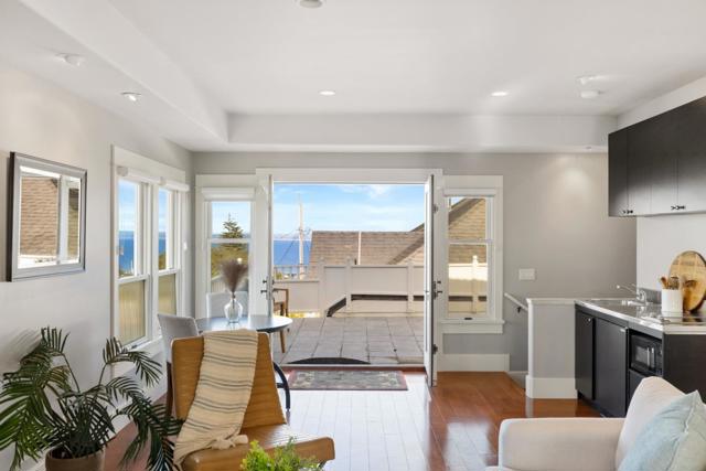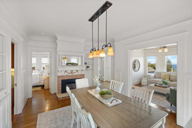 Welcome to this impeccable Victorian masterpiece, where timeless elegance meets modern luxury. This exceptionally updated 5-bedroom, 3.5-bathroom residence offers breathtaking ocean views from your front windows to the living room and throughout, supplying you with your daily dose of our iconic coastline. Experience what coastal living at its finest could be from the ocean view living room with fireplace, the elegant separate dining area with its own fireplace, the hardwood floors, recessed lighting, kitchen with bar height counter and breakfast nook, skylights, and the light and bright ambience throughout the entire home. Accommodating everything you may need and more, whether it is visiting guests, or a need for a home office it is all here. Including separate upstairs living quarters, complete with bathroom, kitchen, eating area, and double doors opening to front-row seats gazing toward Monterey Bay's natural splendor right from your deck. Wake up to misty mornings over the bay, hop over to historic Cannery Row or the Monterey Aquarium in the afternoon, spend evenings exploring tide pools, all from this impeccable Victorian masterpiece.