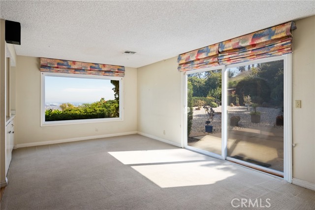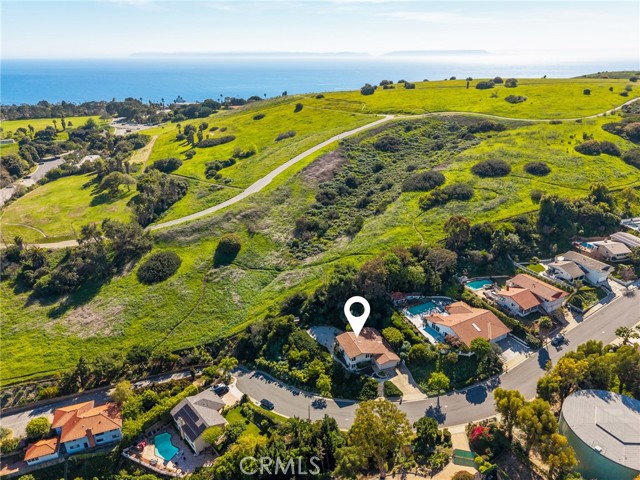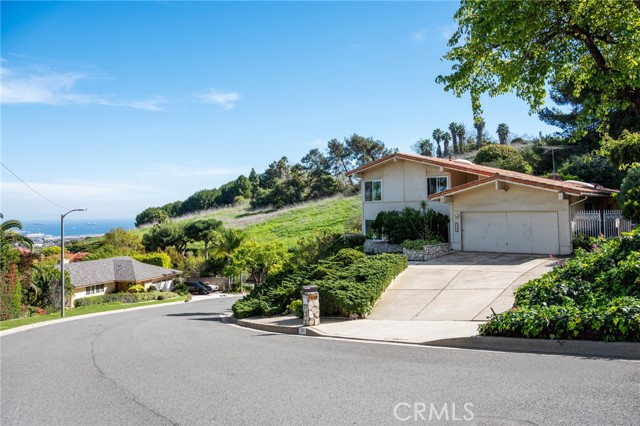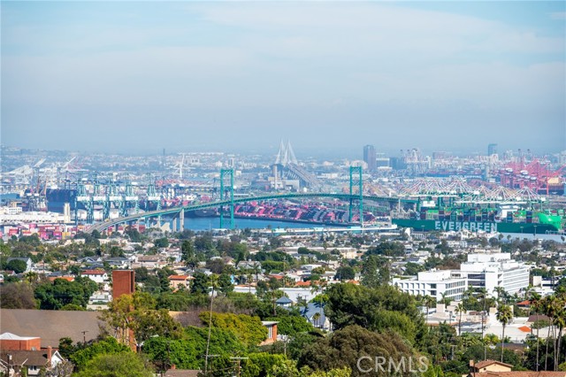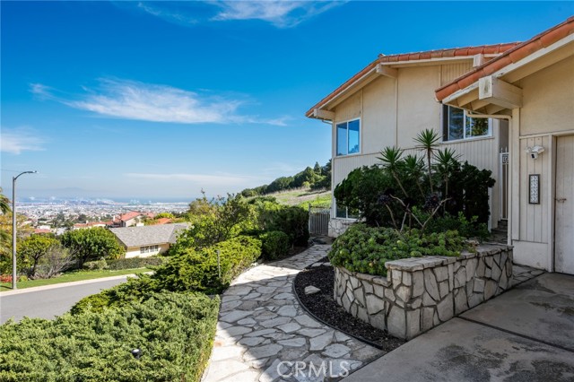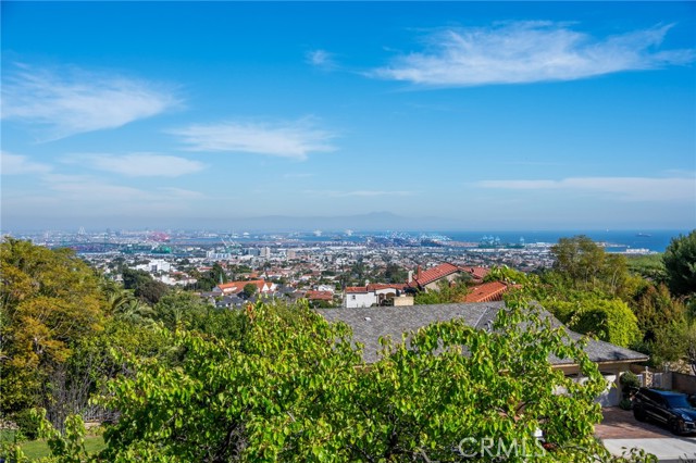 Situated on a premier corner lot at the end of a quiet cul-de-sac, this beautifully maintained home offers expansive harbor, ocean, and sparkling city light views — along with direct access to nature, backing up to Friendship Park and its scenic hiking trails. A welcoming double-door entry opens to a bright foyer featuring classic terrazzo floors. The formal living room showcases a fireplace and picturesque views, creating a warm yet sophisticated gathering space. Just beyond, the formal dining area features sliding glass doors that seamlessly blend indoor and outdoor living, opening to a raised rear patio — perfect for al fresco dining while enjoying sweeping harbor and ocean vistas. The kitchen is appointed with granite tile countertops, an eat-in dining area, and abundant natural light from skylights overhead. Additional skylights in the stairwell further enhance the home’s bright and airy feel. Three upstairs bedrooms capture stunning views, offering peaceful retreats with an ever-changing coastal backdrop. Downstairs, you’ll find a spacious family room along with two additional bedrooms, offering flexibility for guests, extended family, a home office, or gym. The large, flat, usable backyard is a rare find — providing ample room for recreation, gardening, or future possibilities — all while enjoying privacy and open space behind the property. Additional highlights include dual pane windows, a new AC unit, and a two-car garage. Bring your vision and make this view property your own in one of the area’s most desirable settings.