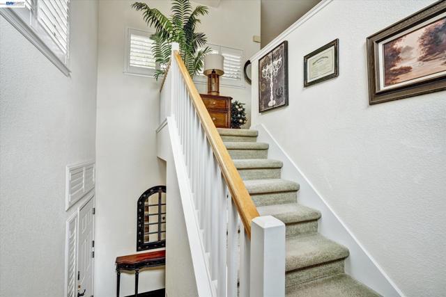 Desirable Verona community townhouse featuring vaulted ceilings. Large windows fill the home with abundant natural night. The living room features a cozy gas-starter fireplace. Elegant wood shuttles throughout the house. New furnace and A/C. The primary suite offers two separate mirrored closets, while the primary bath includes double sinks and a shower over the oval soaking tub. Decorative light fixtures enhance the stairway, dining area, kitchen, and the hallway. BOSCH range/oven, dishwasher, and hardwood floor in kitchen. A relaxing balcony off the dining area. "Defender" whole-house water purification system. Attached one car garage with keypad entry. Easy access to BART, top-rated schools, shopping, restaurants. Close to Highways 580 and 680. Open House Sat. 3/7/2026 and Sun. 3/8/2026 from 1-4 PM.