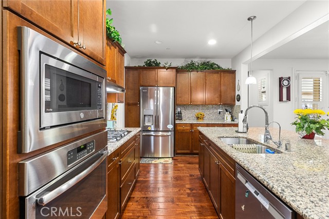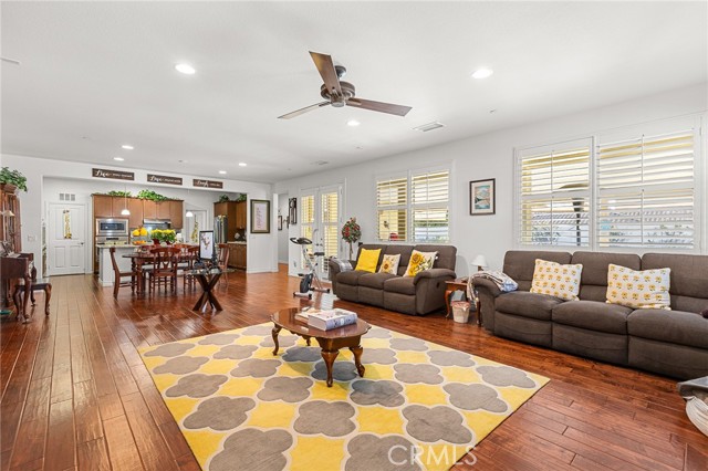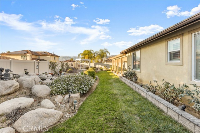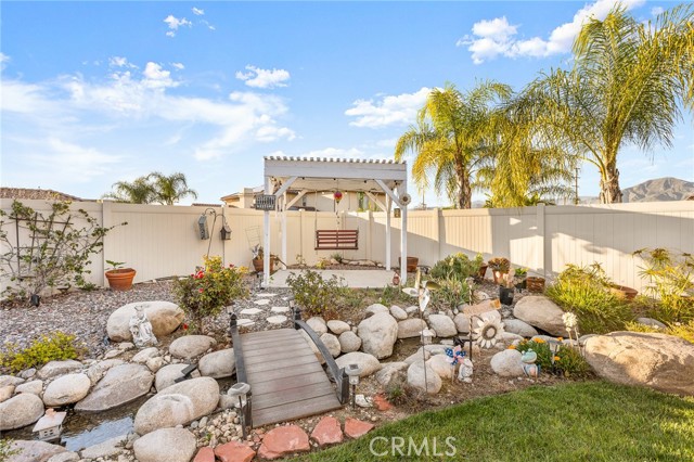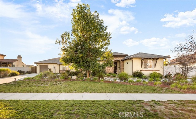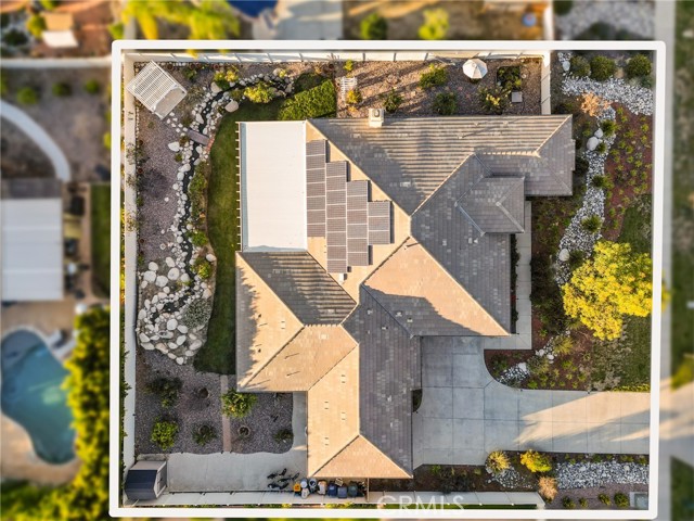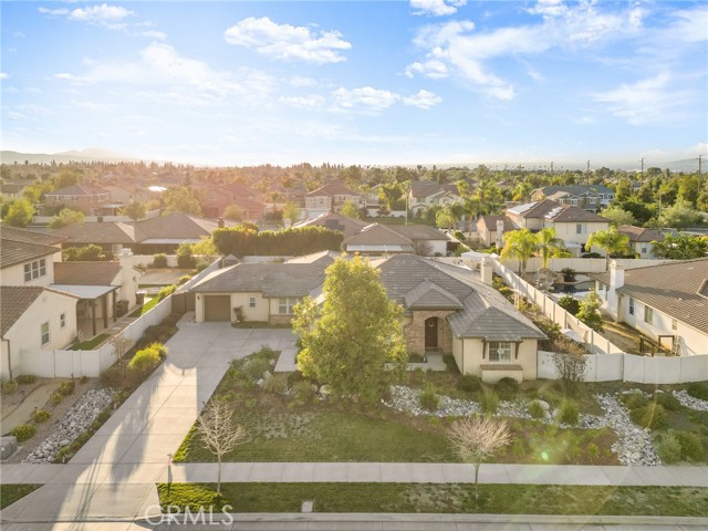 Welcome to this beautifully appointed custom single-story home offering 4 bedrooms and 3.5 bathrooms on a spacious 1/3-acre lot in a well Established neighborhood of Redlands. Designed with both comfort and style in mind, this residence showcases tasteful modern finishes and warm neutral tones throughout. Step inside to find rich hardwood flooring, plantation shutters on every window, a whole-home water softener system, and an energy-efficient 24-panel PAID solar system. The open-concept layout is ideal for entertaining, centered around a grand kitchen featuring abundant prep space, generous cabinetry, and a walk-in pantry. The thoughtfully designed split-bedroom floor plan offers privacy and flexibility for family living, while an additional family room/flex space on the north end of the home provides the perfect area for a media room, office, or playroom. Outdoors, unwind in the serene backyard oasis complete with an alumawood patio cover, stamped concrete, Vinyl fencing with custom iron gates and a charming river-rock stream feature spanning the length of the yard. Both side yards are fully irrigated and home to thriving fruit groves including avocado, apple, grapefruit, tangerine, plum, guava, dragon fruit, Chinese apple, blood orange, cherimoya, and longan — all producing. Additional highlights include a 3-car garage, convenient indoor laundry room and water softener system. Modern comfort, energy efficiency, and resort-style outdoor living — all on one level with No HOA or Mello Roos! Don't Miss this one!