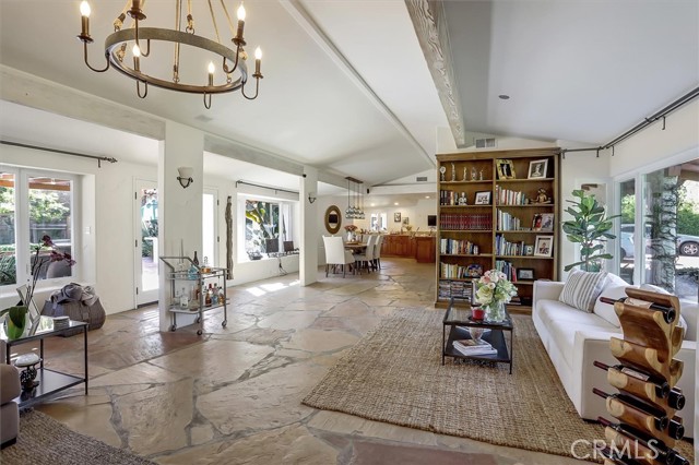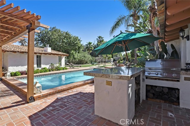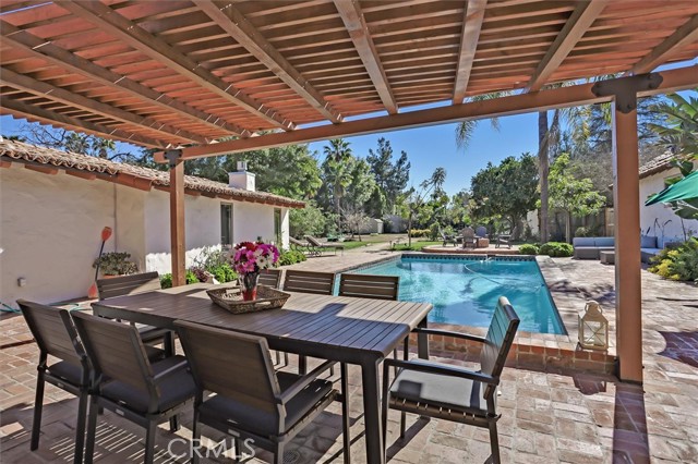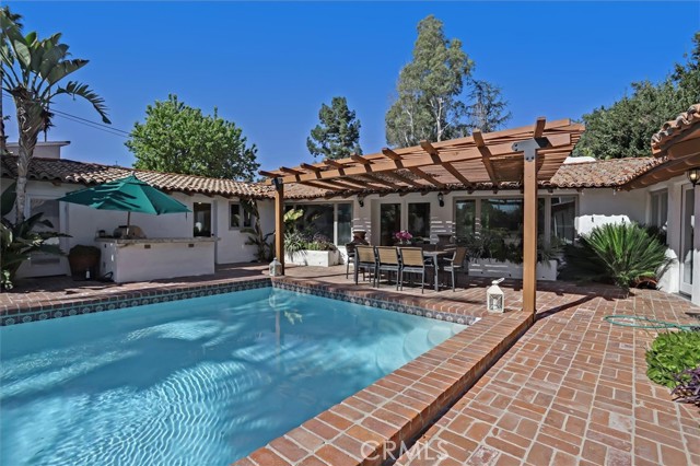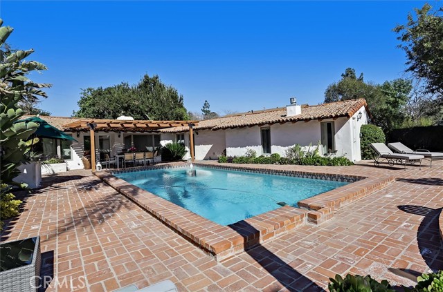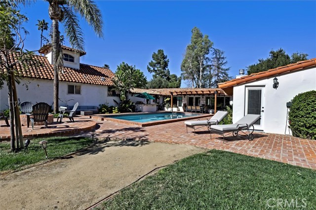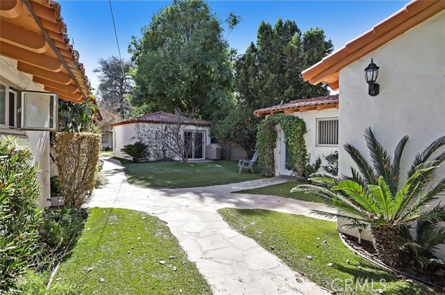 Lovely Spanish Style Home. Past through the private gate to a terracotta paved driveway, meticulously manicured lawn with magnificent mature trees. The very heavy custom front door welcomes you into the bright living room where the Arizona flagstone floors lead you throughout the home. Cozy up to the crackling fireplace. Many windows show off the sparkling pool, pergola, BBQ & beautiful massive backyard with many fruit trees, flowers and room to expand (ADU, tennis anyone or pickleball, sports court?) The main house has 3 bed & 2.5 baths. 2 of the baths have clawfoot tubs for soaking those stresses away. The bright & sunny primary bedroom retreat has 2 doors that'll lead you into the magnificent backyard. The kitchen has been updated with white cabinets, granite counters. New extra large windows welcome in the day. There's a detached nanny/in-law suite or a whatever you want suite. It has a kitchen, full bath & an extra large bedroom. It has a separate entrance too, just in case $$$. We now call the original main house the 616 sqft guest house. It has a full bath & kitchen and a private back yard., again $$$ There's a 360 sqft detached game room that has also been an office, yoga studio, gym and a whole business. What's your ideas? The 2 car detached garage has a 208 sqft studio/salon attached with a 1/2 bath. What will you use it for? This is a home you don't want to miss. Here you can definitely Live!, Work!, Play!. Welcome Home!