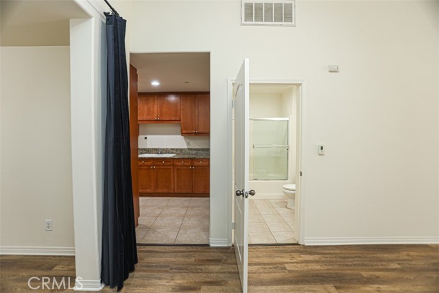This charming ground-floor condo, built in 2007, is a hidden gem located in the desirable city of Fountain Valley. Situated within the highly sought after Los Caballeros Sports Village, this move-in-ready unit offers 1 bedroom plus a den, 2 bathrooms, and over 800 sqft of living space. It provides the functionality of a 2-bedroom, 2-bathroom layout with an inviting open concept, highlighted by 10' ceilings, granite countertops and sleek vinyl flooring and tile throughout. The condo is equipped with energy-efficient central A/C, in-unit laundry, Washer/Dryer combo, adding convenience to daily living. The unit is nestled within a gated community, offering covered/assigned parking, with HOA dues covering trash, water, and earthquake insurance. The location is ideal, being close to shopping, dining, Mile Square Park, freeway access, and just steps away from the Los Caballeros Sports Club, which features one of Southern California's largest pickleball facilities. This condo offers the perfect blend of comfort, style, and convenience in a highly sought-after area.