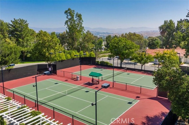 Single level home in the highly sought-after community of "The Summit" in Valencia. This charming house has 3 bedrooms & 2 full baths with a nice split layout. Hardwood floors throughout, tile in bathrooms, new carpet in 2 bedrooms, new roof w/30 year transferable warranty, AC & heating installed in 2018, transfer lease supplier-owned solar panels for reduced electric costs, dual pane windows installed 5 years ago on yard side, water heater installed in 2020. The kitchen has a long Island counter which opens to the family room with fireplace. The primary suite has direct access to the open air atrium and a bathroom with step-in shower, and walk-in closet. Hiking trails via arroyos, tennis and paddleball courts, community pools, including a junior Olympic-sized pool. The community clubhouse and parks are nearby. Located just minutes from the Westfield Mall, dining, shopping, Whole Foods and the Town Center. Close to Valencia Valley and Meadows Elementary Schools, College of the Canyons and Cal Arts. 2 minutes away from the 5 freeway. Low HOA dues and NO mello roos. Don't miss a chance to own this great property!