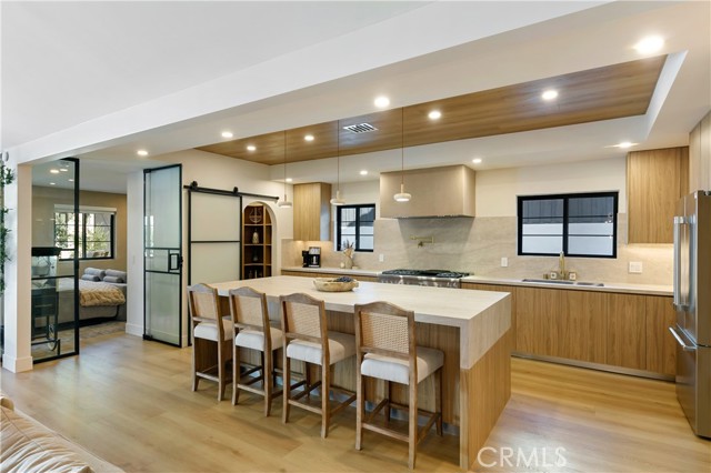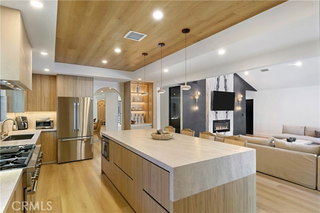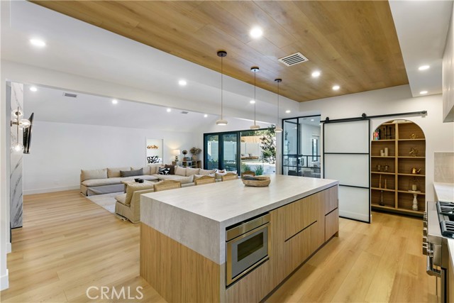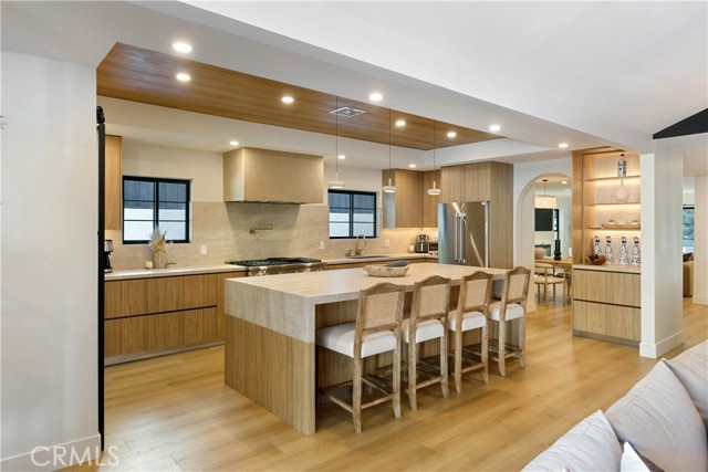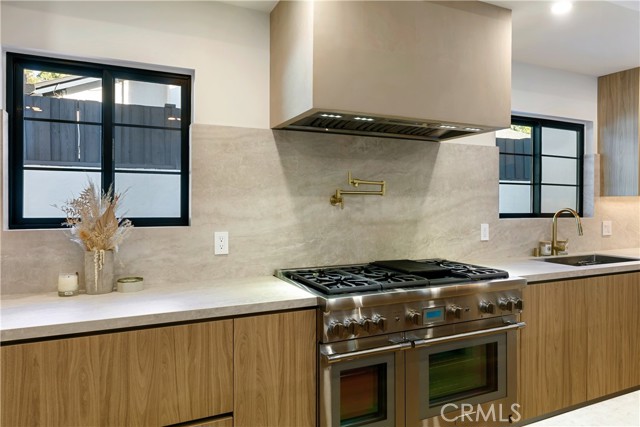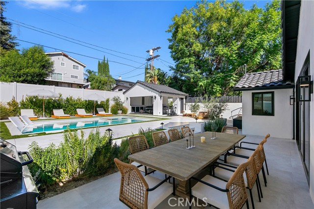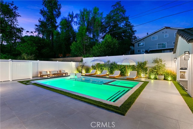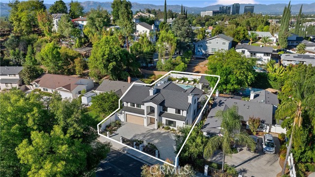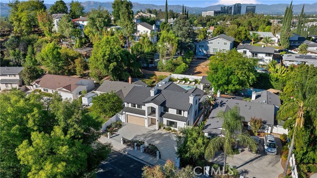 This custom Woodland Hills haven has been thoroughly and extensively reimagined and reinvented. With 5 bedrooms, 5.5 bathrooms, and a stunning home office, this residence boasts living space. Every area has been thoughtfully designed by its creator resulting in vibes typically seen in the highest end of finishes and design in neighborhoods like Malibu or Brentwood. The flawless layout is ideal, from the functional upscale kitchen boasting Thermador appliances and large walk-in pantry, to the expansive master retreat inclusive of a spa-like bathroom, walk-in closets, built-in vanity and spacious balcony. With statements of Roman Clay walls throughout, this warm residence has it all! The functionality and comfort proceeds with 5 ensuite bedrooms, two of which are situated on the 1st level. Stepping outdoors to the tranquil and alluring backyard which is meticulously landscaped and lit, you will encounter a brand new pool and spa with large baja area surrounded by beautiful potted olive trees, multiple seating areas, and a large covered high ceiling cabana, perfect to watch the games of the week or for outdoor movie nights. There is ample storage space with a designated storage facility in the backyard, and multiple custom linen and coat closets throughout the home. Additional features include drive in/drive out driveway gates, 3 fireplaces and epoxy floor garage. This Woodland Hills gem is delightfully situated south of Ventura Blvd. yet close to all the conveniences and essentials. .. .Whole Foods, Trader Joes, The Village, Westfield Topanga, The Commons at Calabasas and a plethora of restaurants. Once you step in, you will not want to leave. Whether you're looking for a home or looking to entertain, this warm generational home is perfect for you.