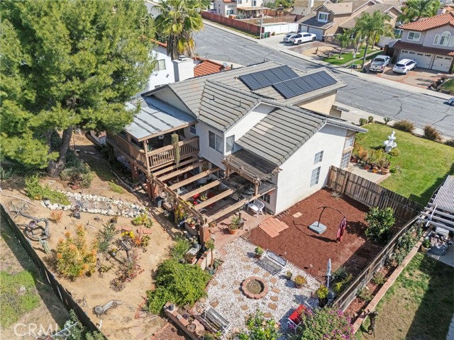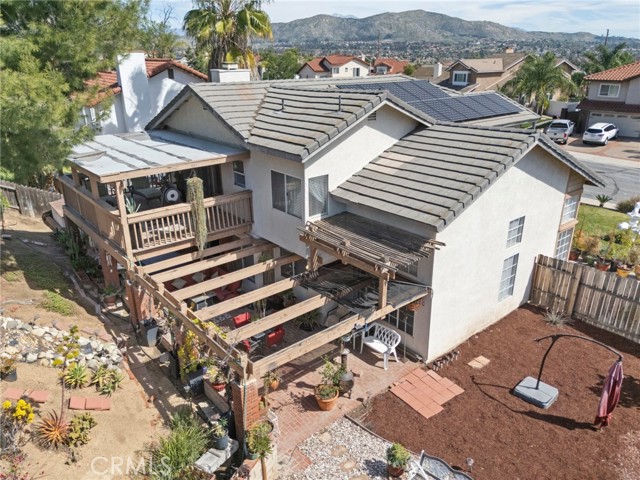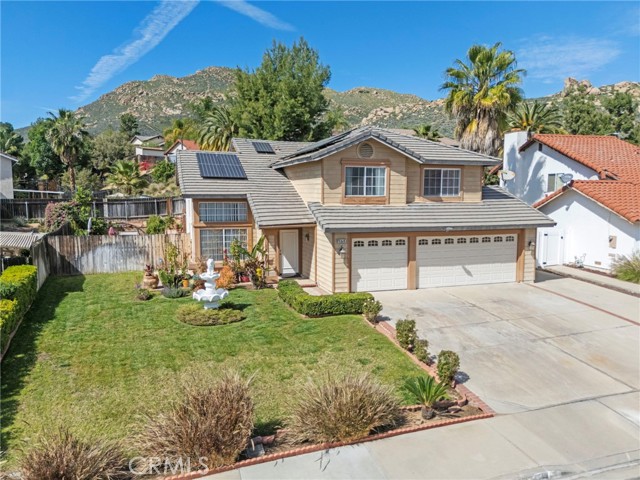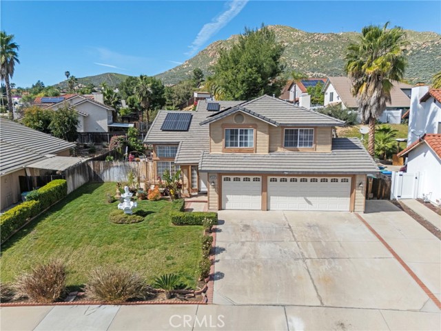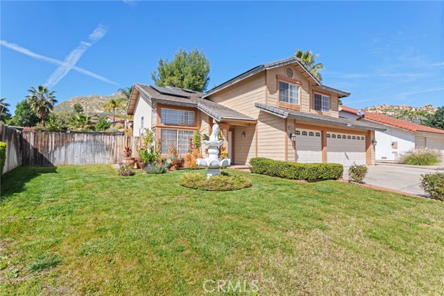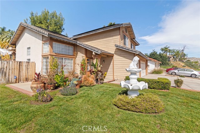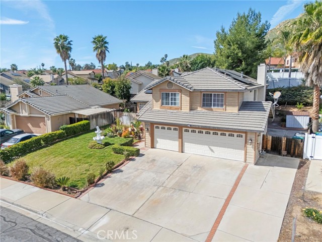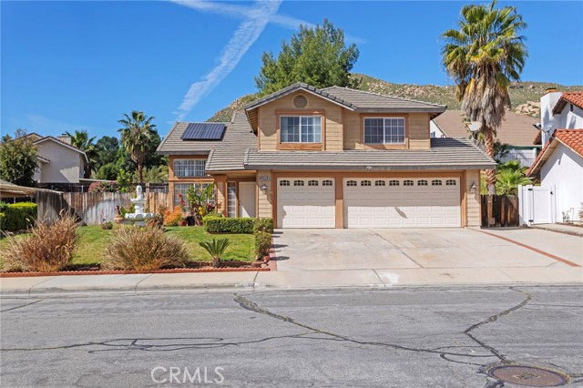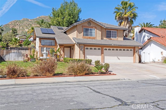 Located in the desirable North Moreno Valley area near the Riverside border, this two-story 4-bedroom, 2.5-bath home offers space, comfort, and scenic mountain views. All bedrooms are thoughtfully situated upstairs, including a spacious primary suite featuring a spa-inspired ensuite with a soaking tub and separate shower. The open floor plan is filled with natural light, and the kitchen flows seamlessly into the inviting family room with a cozy fireplace ideal for both everyday living and entertaining. Enjoy ample storage throughout, a rare three-car garage, and solar panels for added energy efficiency. Step outside to enjoy the outdoor space, perfect for relaxing or hosting gatherings. Conveniently located near the 60 Freeway, shopping centers, dining, and just minutes from Riverside, this home blends tranquility with commuter-friendly accessibility.