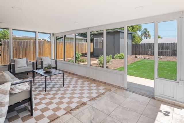 Where modern upgrades meet comfort and charm. This beautifully remodeled 3-bedroom, 2-bath home offers approximately 1,300 square feet of thoughtfully designed living space , included a sunroom and bonus room that add flexibility for today’s lifestyle. From the moment you walk in, you’re greeted by an open and inviting layout filled with natural light. The fully renovated kitchen is the heart of the home, showcasing sleek new cabinetry, elegant quartz countertops, stainless steel appliances, and recessed lighting that creates a clean, contemporary feel. Rich wood flooring runs throughout, while ceiling fans in every bedroom add comfort and efficiency. The updated bathroom features a stylish design with modern finishes. Fresh interior and exterior paint give the home a crisp, move-in-ready appeal — allowing you to simply unpack and enjoy. The enclosed sunroom provides the perfect setting for morning coffee, a home office, or weekend entertaining. Outside, the private backyard offers mature orange and plum trees, space to relax, and room to grow on the generously sized lot. A remodeled detached shed adds even more versatility — ideal for storage, hobbies, or creative use. This is a rare opportunity to own a turnkey home with room to live, entertain, and expand — all in a convenient Escondido location.