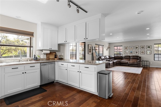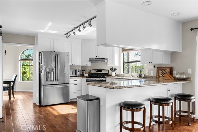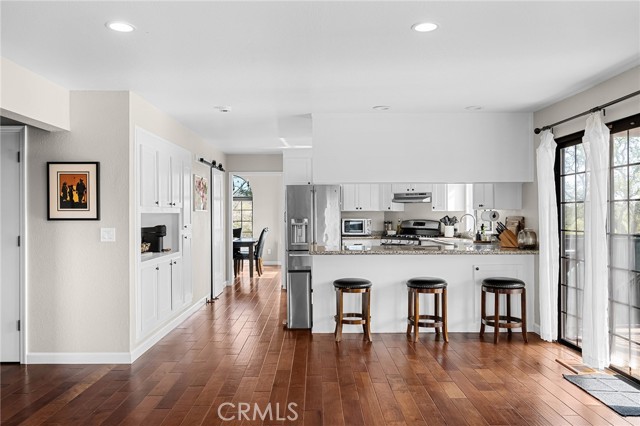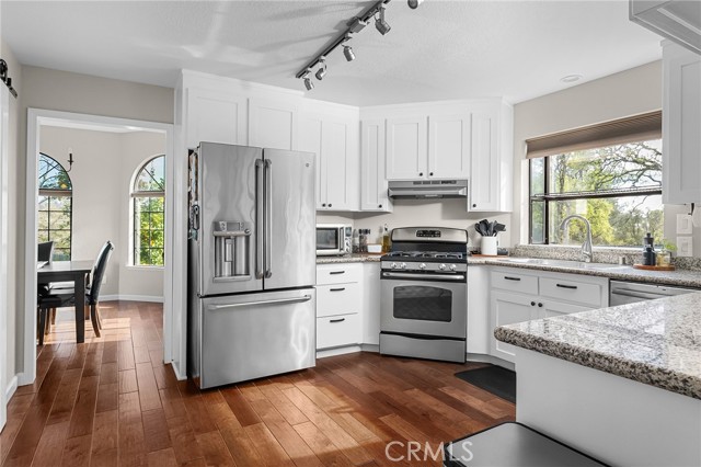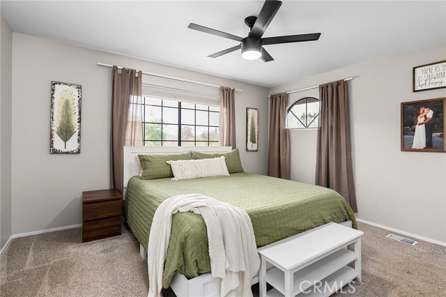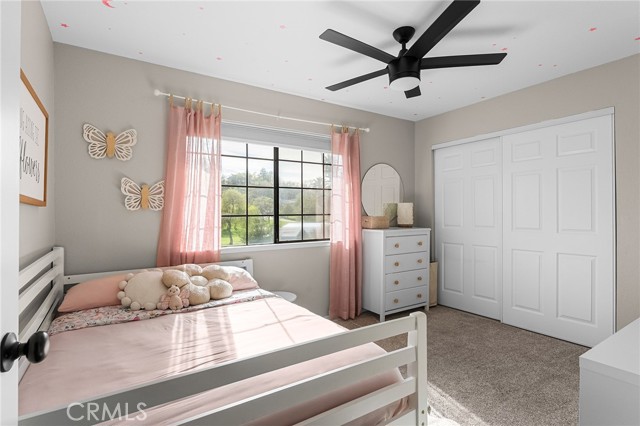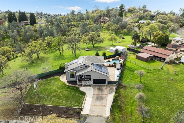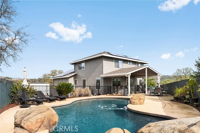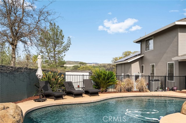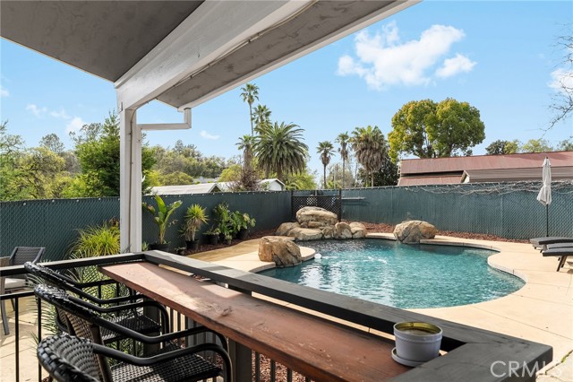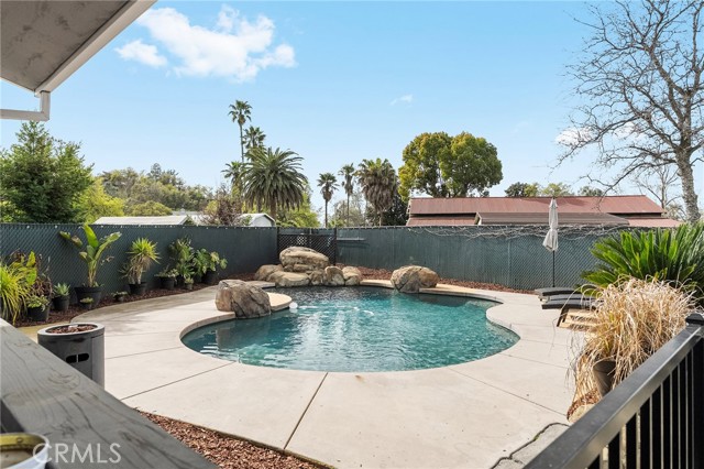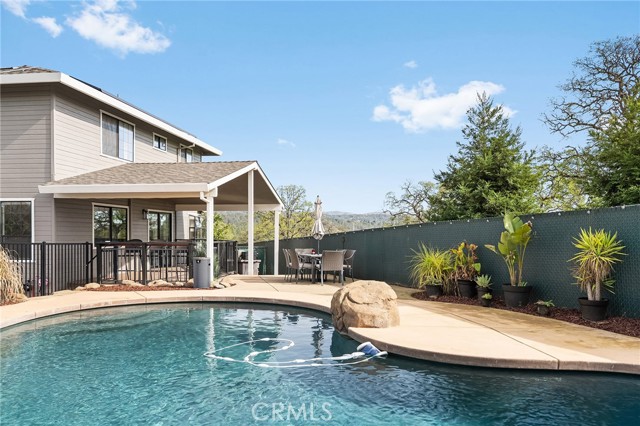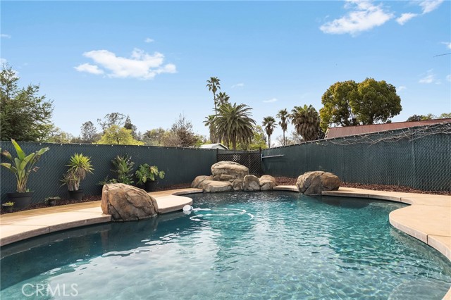Beautifully updated 4 bedroom, 3 bathroom home located on a quiet cul-de-sac with fantastic views and a peaceful, low-traffic setting just minutes from schools, shopping, and restaurants. Light-filled interior features tall wood-beam vaulted ceilings and expansive windows that capture the views and bring in abundant natural light. The functional layout includes four bedrooms, with the fourth bedroom having double doors, making it ideal for a home office, den, or bedroom. Step outside to your private backyard retreat featuring a swimming pool with waterfall feature designed for year-round enjoyment. The pool system allows for either saltwater or chlorine use, offering flexibility and convenience. Energy-efficient features include a solar system, whole house fan, UV-tinted arch windows, and cellular shades throughout to help manage utility costs. Recent improvements completed within the past five years include interior and exterior paint, roof, landscaping, exterior rock accent wall, exterior doors, carpet, updated door hardware, modernized light switches and outlets, updated interior and exterior lighting and ceiling fans, and extended concrete to widen the driveway and accommodate RV parking. Move-in ready with major improvements already in place, offering comfort, efficiency, and space in a desirable cul-de-sac location.