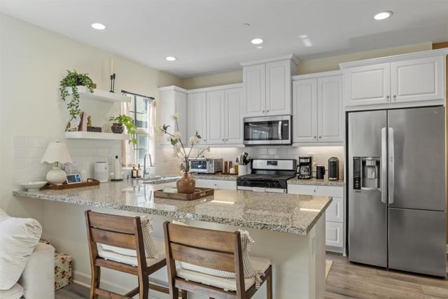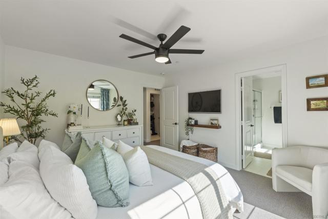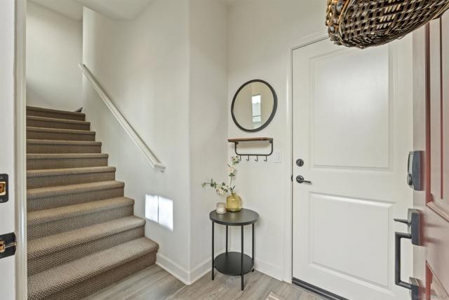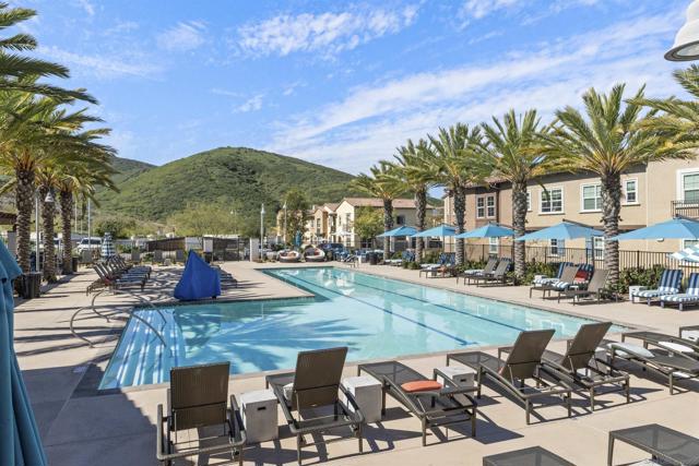 This beautifully upgraded residence offers the perfect blend of comfort, style, and convenience. Step inside to an open and bright floor plan featuring recessed lighting, upgraded flooring, and plush newer carpet throughout. The modern kitchen is designed for both everyday living and entertaining, complete with upgraded appliances, ample cabinetry, and countertop seating that flows seamlessly into the main living area. A convenient downstairs half bathroom adds extra functionality for guests. Upstairs, each spacious bedroom offers its own private full bathroom — ideal for guests, roommates, or family members seeking extra privacy. Ceiling fans in the bedrooms provide added comfort year-round, and the upstairs laundry room adds everyday convenience right where you need it. Enjoy indoor-outdoor living on your covered balcony — perfect for morning coffee or relaxing evenings. The attached two-car garage features durable epoxy flooring, offering both functionality and a clean, polished look. This home also includes paid solar, providing potential energy efficiency and long-term savings. Residents enjoy access to beautifully maintained community amenities, including a sparkling pool and inviting playground area. Don’t miss the opportunity to make 959 Slate your next home!
