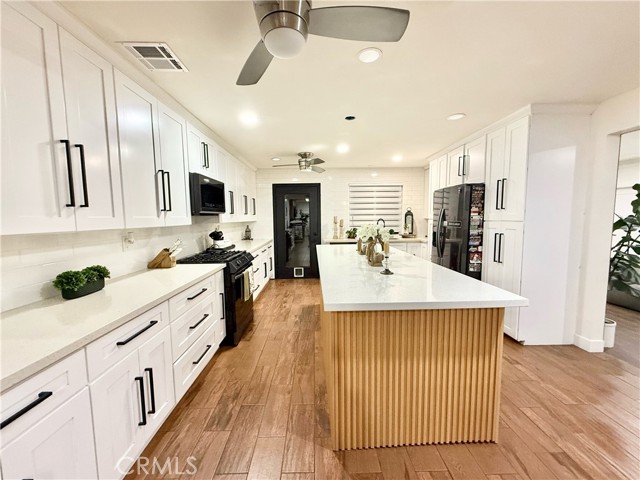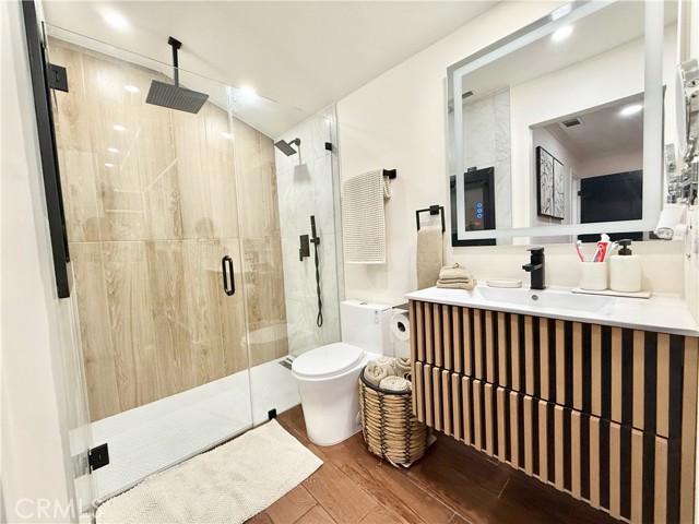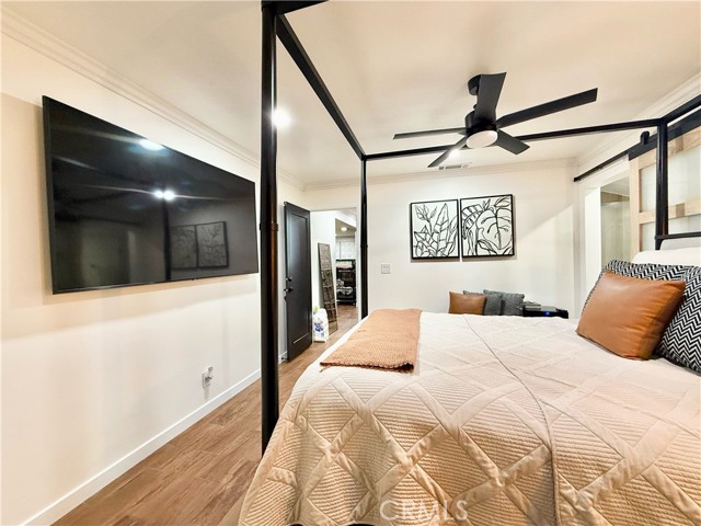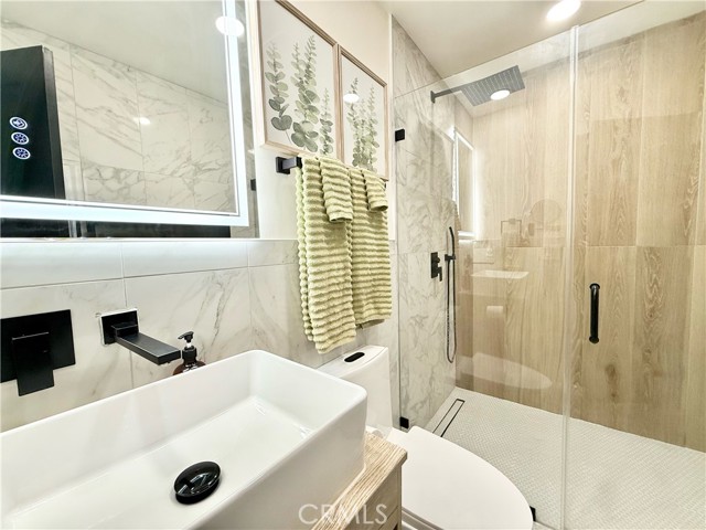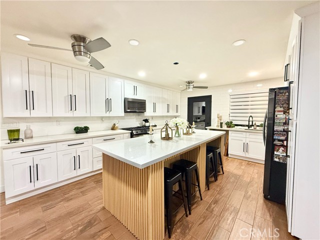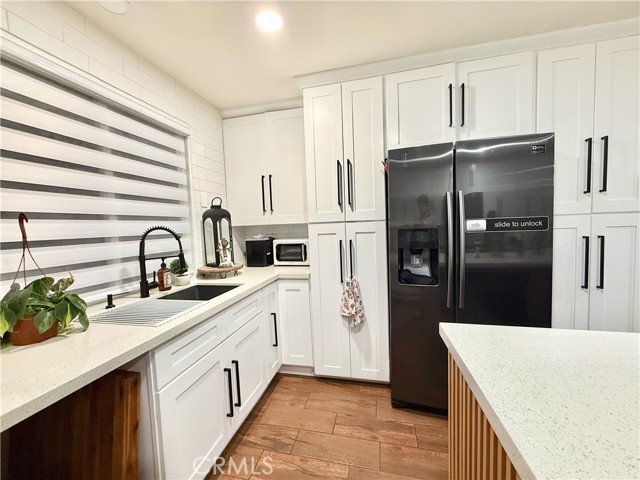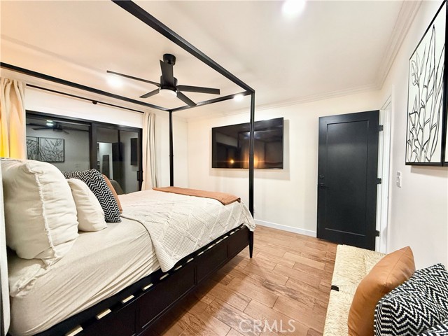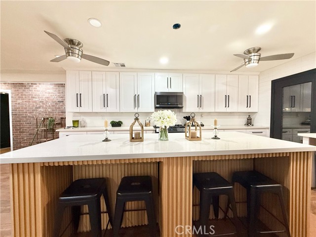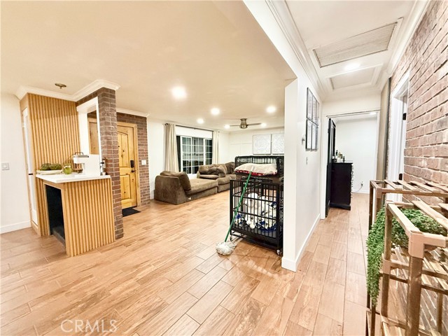 fully renovated 2026 modern masterpiece that blends clean contemporary design with warm architectural character. This expansive 4bedroom, 4bathroom residence has been thoughtfully transformed to offer a sleek, high-end aesthetic while maintaining functionality for everyday living and entertaining. NEW ROOF WILL BE INSTALLED PRIOR TO CLOSE OF ESCROW. Step inside and youll immediately appreciate the bright, airy interior highlighted by crisp white tones and striking REAL brick accent walls that add texture and sophistication. The open layout is enhanced by multiple sliding glass doors throughout the home, creating seamless indoor-outdoor flow and allowing natural light to pour in from every angle. The remodeled bathrooms have been tastefully updated with modern finishes, and the primary living area bathroom features a stunning built-in wall fireplace, creating a spa-like atmosphere rarely found in homes at this price point. A newly added glass shower wall in the living room bathroom further elevates the contemporary design and adds a refined, contemporary touch not yet reflected in marketing photos. Designed for both comfort and versatility, the garage has been professionally converted into two distinct living spaces, including an additional living room area and a generously sized bedroom complete with two large closets and enhanced lighting. While there is no traditional garage, the added square footage significantly expands the home’s livable functionality, making it ideal for multi-generational living, guest quarters, or flexible lifestyle needs. Outdoor living is where this property truly shines. The backyard is an entertainers dream, featuring a fully built outdoor bar, outdoor kitchen, cozy outdoor fireplace, and a dedicated entertainment area perfect for hosting gatherings year-round. Two additional exterior bathrooms equipped with sinks and toilets provide added convenience for guests during events. A detached storage shed with a durable, long-lasting shingle roof offers practical storage solutions while complementing the overall property design. To provide added peace of mind, a brand-new roof will be installed prior to the close of escrow One of the most valuable and practical features of this property is the fully concreted front and backyard areas, maximizing usable space and offering an impressive amount of parking. With extensive concrete work throughout, the property can comfortably accommodate approximately eight to nine vehicles