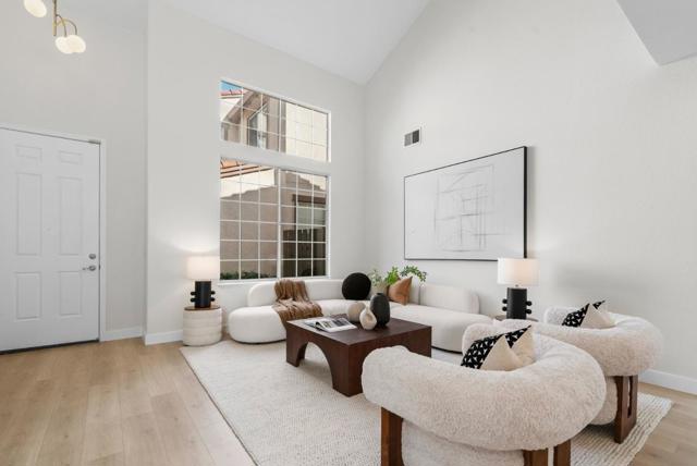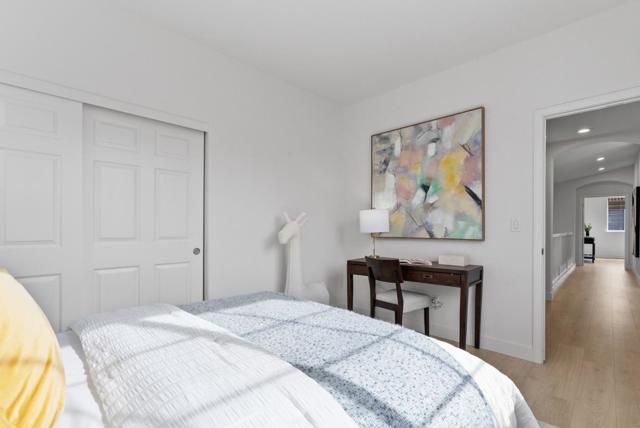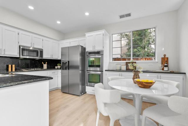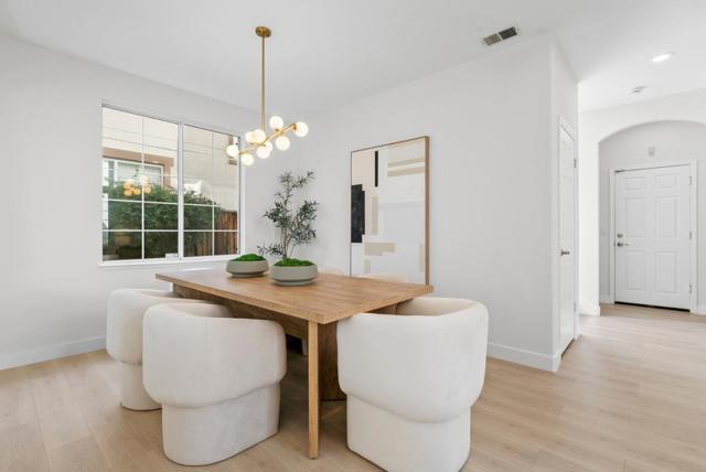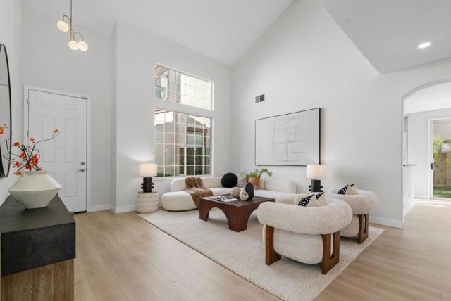 Beautifully updated single-family home in the desirable Mission Park community featuring a highly sought-after main-level bedroom and full bath ideal for guests, multigenerational living, or a private home office. Brand-new laminate flooring runs throughout, complemented by modern chandeliers and a light-filled layout with soaring ceilings. A stunning arched opening between the formal dining area and family room adds timeless architectural character while maintaining an open flow. The refreshed kitchen showcases granite countertops and stainless steel appliances, including a double oven, and connects seamlessly to the cozy family room with fireplace and backyard access. Upstairs, the spacious primary suite includes an attached retreat perfect for an office, nursery, lounge, or potential additional bedroom conversion. Private backyard offers a paved patio and brand-new lawn for easy outdoor enjoyment. Short walk to the community pool and Fuller Park, minutes to Rivermark Plaza, Whole Foods, Nvidia, Intel, Oracle, Google and other major tech employers, and walking distance to Levis Stadium. Move-in ready with flexibility, comfort, and convenience.