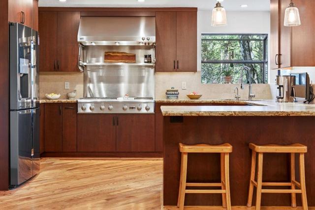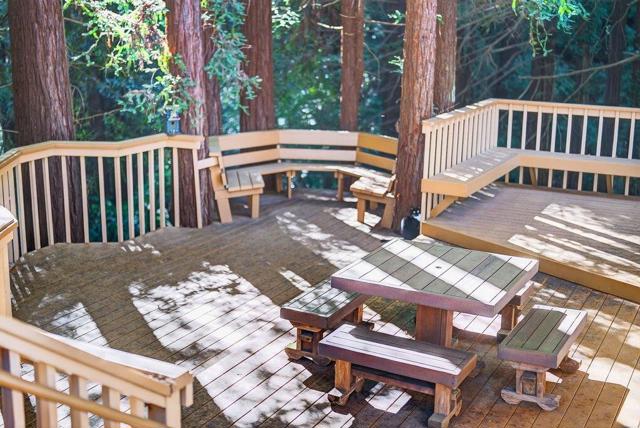 Located in the desirable Soquel Hills, 350 Aurora Road offers exceptional privacy, abundant sunshine, and mature redwood stands on 1.286 acres. This 3,183 sq ft home is thoughtfully designed to capture natural light and peaceful views, creating an ideal balance of comfort, functionality, and indooroutdoor living. The kitchen is a standout, featuring leather-finished granite countertops, high-end stainless steel appliances, generous cabinetry and workspace, a convenient pantry, and sweeping valley views. The spacious floor plan is well suited for everyday living and entertaining, with a large dining area off the kitchen, a welcoming living room at the entry, and a family room that doubles as a home theater with 7.1 surround sound and screen/projector, all included. The primary suite offers a walk-in closet and a spa-like bath with dual vanities, a side-jet shower, and a skylight. Outdoor spaces include a wraparound deck, a sun-filled pool with patio, and a fenced garden with raised beds. Additional features include a three-car garage, extensive storage, and ample guest parking. Convenient access to Silicon Valley, Santa Cruz, Scotts Valley, and Soquel.