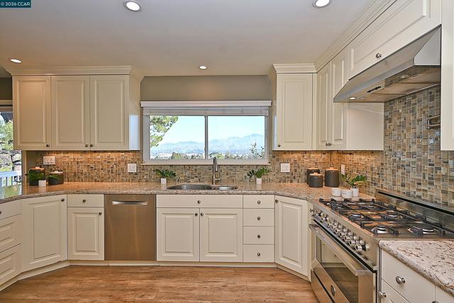 OPEN TUESDAY 3/3 10:30am-1:30pm. Tucked at the end of a quiet cul-de-sac, this view-driven Lafayette retreat captures sweeping panoramic views of Mt. Diablo, rolling hills, and sparkling city lights. Designed with flexibility in mind, the split-level floor plan offers a ground-level primary suite and secondary bedroom, an updated kitchen, and an inviting family room framed by soaring wood-beamed ceilings—all flowing seamlessly to an expansive deck built for entertaining and peaceful outdoor living. The lower level lives like a private residence of its own, featuring two additional bedrooms, a spacious living area, kitchenette, laundry, separate entrance, and private deck—ideal for extended family, guests, or potential income. With two fireplaces, dual laundry areas, generous storage, and an oversized utility room, the home blends comfort with functionality. Set on beautifully usable grounds with garden space, mature fruit trees, RV/boat parking, and abundant off-street parking. Located within the highly regarded Lafayette/Acalanes school district and just minutes to downtown, BART, and major commute routes—this is the perfect blend of privacy, views, and convenience. Views: Downtown