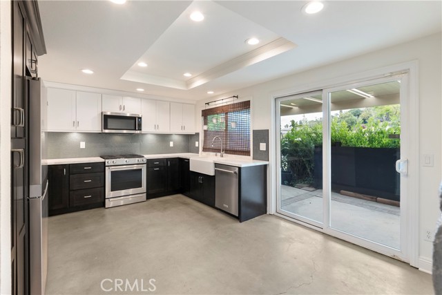 VICTORIA AREA! - PRICE IMPROVEMENT! CASUAL CAREFREE LIVING! This 2,030 sqft single-story townhome with a 2-car attached garage offers a worry-free, lock it and leave it opportunity for you to spend your time enjoying your life without constant home maintenance and upkeep. Having undergone a near-whole-house-renovation in late 2024, this home is in move-in ready condition! The upgrades were numerous and include: a fully-remodeled kitchen featuring quality cabinets with pull-outs, farmhouse sink, quartz counters, tasteful glass tile backsplash, KitchenAid stainless appliances, new garbage disposal and faucet; a complete remodel of all three bathrooms including vanities, counters, toilets, floors and tile work in tub/shower; new plumbing; new lighting including new fixtures, recessed and ceiling fans; new electric switches and receptacles; new interior paint throughout; easy maintenance diamond ground and polished contemporary concrete floors; a new water heater; new gutters, downspouts and exterior drains; and more! Located in a small enclave of 45 homes in the desirable Palm Terrace Townhomes community off Victoria Avenue, the monthly HOA fee covers more than most HOAs including: insurance on the physical structure, the roof, exterior paint and most siding repairs, the pool and bathroom facilities, access to the RV lot, weekly front yard landscaping and front yard water, as well as maintenance of the common areas. This home offers high ceilings, vast amounts of interior open space, natural light throughout, a spacious living room with gas fireplace, large separate dining area adjacent to living room, and three private patio areas for outdoors relaxing. Built as a 2 bedroom with a den/office, the office could be used as a 3rd bedroom so is advertised as such. This community offers a nice mix of retirees, families and single-professionals and is conveniently close to everything including freeways, churches, schools, shopping and more! This home is a SFR/PUD not a CONDO, so qualifies for all financing! Don't miss it!