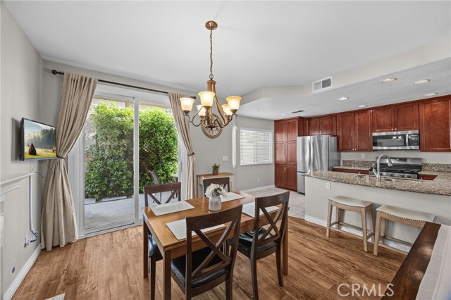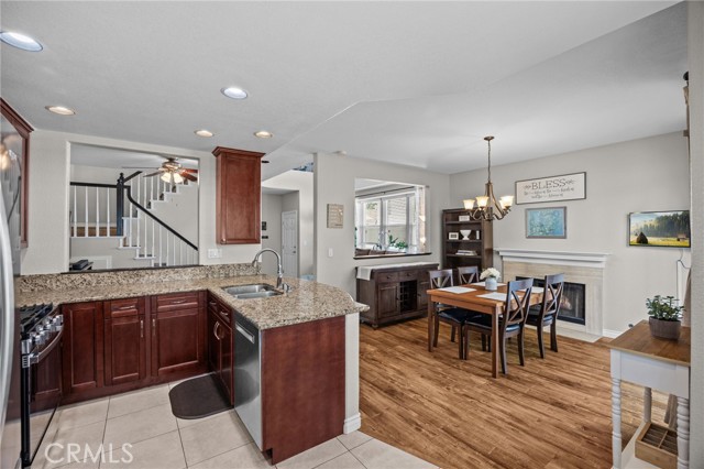 |UPDATED| |MOVE-IN READY| LOW MAINTENANCE YARD | CLOSE TO OC| LOW HOA & LOW TAXES| Welcome to this beautifully maintained and stylish home nestled in the highly sought-after Sierra Del Oro community, right next to Yorba Linda. Blending warmth and modern upgrades, this inviting residence features high-end laminate wood flooring, soaring ceilings, DOUBLE PANE WINDOWS, custom blinds, ceiling fans, and neutral paint throughout. The thoughtfully designed layout includes a bright, open living room and dining area with a cozy fireplace - perfect for entertaining. The UPGRADED KITCHEN boasts STAINLESS-STEEL APPLIANCES, cherrywood cabinetry with soft-close drawers, a lazy-susan corner unit for easy access, GRANITE COUNTERTOPS and a breakfast bar perfect for everyday meals. The community room is open and airy with lots of natural light, and an under-window ledge for an added architectural enhancement. Completing the downstairs area, is a highly convenient 1/2 bathroom, and direct access to the attached garage. Ascending upstairs, you'll reach a beautiful eye-catching rounded 3/4 ledge separating an open, versatile LOFT ideal for an office, workout area, child's play area, or additional living space. Another visually appealing accent is the archway leading to your oversized primary wing with an ensuite bedroom which is spacious, has a walk-in closet, and doors leading to your PRIVATE BALCONY. The bathroom includes a SOAKING TUB, dual-sink vanity, and a separate walk-in shower. Privacy was well thought out in this floorplan with another upgraded bathroom, two additional nice sized bedrooms with walk-in closets, and additional cabinet space for extra storage, at the opposite end of the home. Recent upgrades provide peace of mind, including a PEX PLUMBING REPIPE, and NEWLY UPGRADED HEATING UNIT. Located in a low HOA community, low taxes, and easy access to 91 and 71 freeways, shopping, parks, and award-winning schools! This fantastic turnkey home offers a wonderful opportunity to buy in a desirable area of Corona. Don't miss this incredible opportunity to make this house your home.