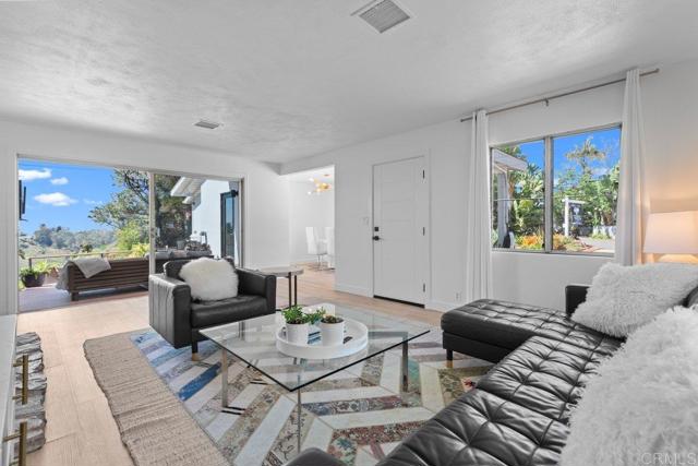 Coastal Modern Private Sanctuary 1.24-Acre Leucadia Estate with Ocean Views! Recently appraised at $2,200,000. This single-story retreat seamlessly bridges timeless architectural integrity with sophisticated contemporary luxury. From the completely rebuilt bedroom wing to the sun-drenched floor plan, the design prioritizes flow, light, and stunning ocean and hillside views. A gas fireplace anchors the living room with a large slider picture window capturing the amazing view. From the living room, the floor plan flows easily into the dining area and a sleek galley kitchen. There are quartz countertops, stainless steel appliances, custom cabinetry, and refined designer hardware. The captivating primary suite is a peaceful retreat framed by panoramic views, remote-controlled shades, spa-inspired en-suite bathroom, and oversized dressing room featuring its own washer and dryer. All interior doors are upgraded Trustile solid-core doors. Two of the bedrooms have private entrances ideal for guests, or rental potential. Additional features include a 2020 four-zone Lennox Elite HVAC, two laundry areas, step-free interior layout, with luxury vinyl plank flooring. Two car garage with additional parking for several vehicles including discreet space for RV or boat. Enjoy the fully landscaped grounds with surrounding hard scape and the privacy of the roof top deck. With no HOA, CC&Rs or Mello-Roos, this exceptional home delivers privacy, style, and relaxed sophistication.