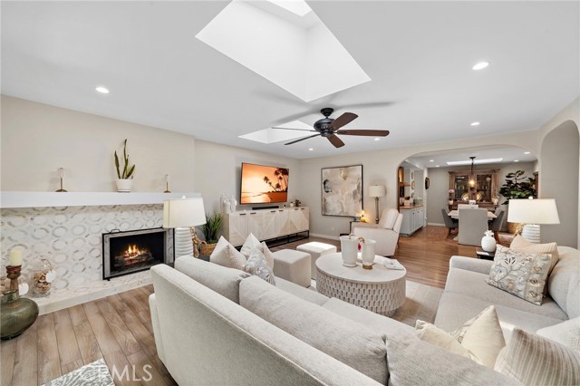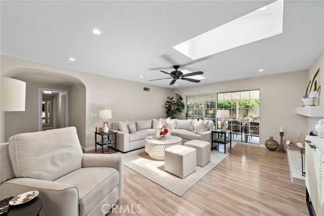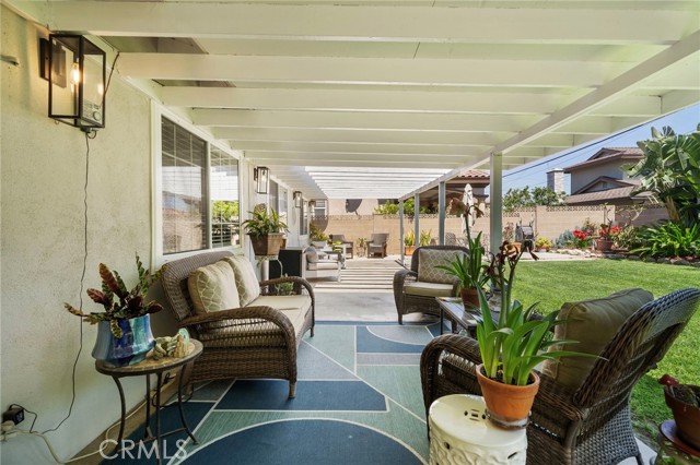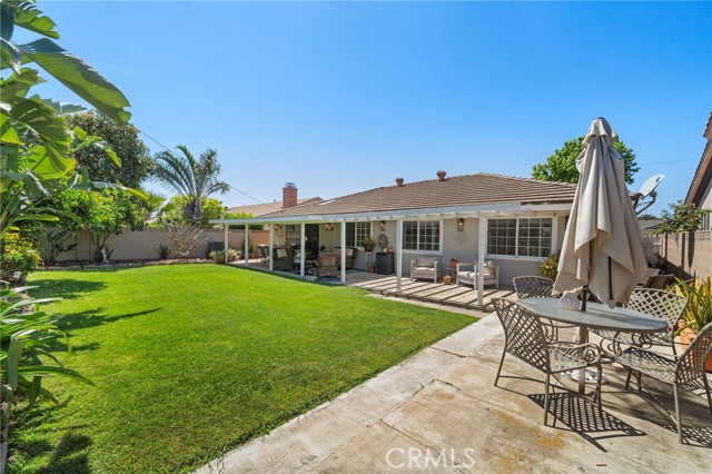 This beautifully remodelled 4 Bedroom 2.5 Bath 1837 sq ft home is situated on an extra large lot offering a very large backyard and entertaining space. The open floor plan has several sky lites offering an abundance of natural light throughout. The Kitchen is open to the family eating area and to the inviting oversized greatroom. The kitchen offers a stainless french door refrigerator, a gas cooktop with an electric oven & warming drawer and opens to the laundry room and direct access 2 car garage. Enjoy Central Air and Newer Vinyl flooring throughout and a gorgeous carrara marble gas fireplace in the greatroom which opens to the patio area and oversized landscaped back yard oasis. The expanded patio area creates a wonderful space for entertaining and family life along with a huge lush green backyard offering orange, lemon and lime trees! Inside the expanded Master Suite offers vaulted beamed ceilings, window shutters and an En Suite Bathroom with Double Vanities and a WalkIn Shower. Three more bedrooms and Guest bath complete the floorplan plus you will find an abundance of storage throughout. This home comes turnkey in a friendly desirable neighborhood with zero traffic noise, close to local schools and just minutes from the beach!