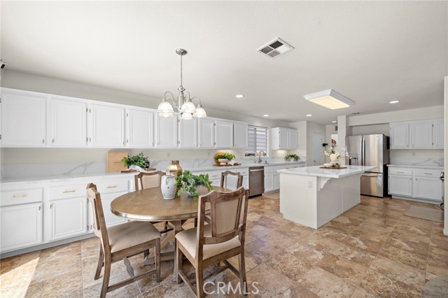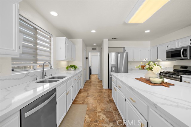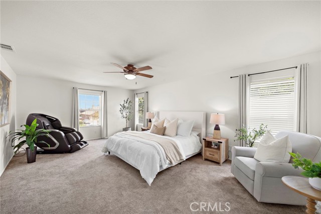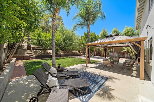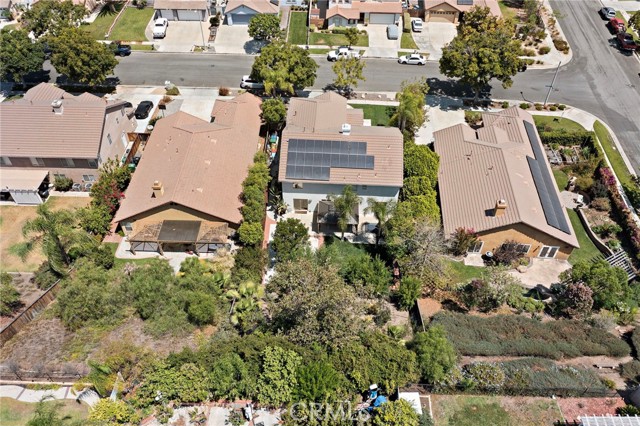 Stunning 6-bedroom, 3-bath home with NO HOA, LOW TAXES, and fully paid 8.4 kW SOLAR! Located in a highly desirable neighborhood in the foothills of South Corona, this spacious home offers an ideal floorplan with a downstairs bedroom and full bath—perfect for guests or multi-generational living. Enter through double doors into a light filled home featuring formal living and dining rooms, a generous sized family room that opens with gas fireplace, which opens into an updated kitchen with brand-new quartz countertops, large island, stainless steel appliances, and breakfast nook with slider to the backyard. Upstairs you'll find five more spacious bedrooms, including a luxurious primary suite with double-door entry, dual walk-in closets, soaking tub, separate shower, dual vanities, and a sit-down vanity area. A large loft offers flexible space for a home office, playroom, or second living area. The private backyard is pool-sized and perfect for entertaining family and friends alike for a barbecue, play dates, or evening drinks with a large patio, mature fruit trees (lemon & pomegranate), raised garden beds, and terraced planting areas. Energy-efficient upgrades include solar (installed 2018), tankless water heater, newer dual zoned HVAC (Dec 2022), whole-house fan, NEST thermostat with sensors, smart home window shades, and smart irrigation for both grass and drought-tolerant landscaping. The 3-car garage offers ample storage, with plenty of driveway and street parking. Walk to Santiago High School and local parks, with easy access to the 91/15 freeways, express lanes, shopping, dining, and trails. This one truly has it all—space, upgrades, and location!