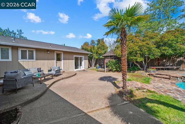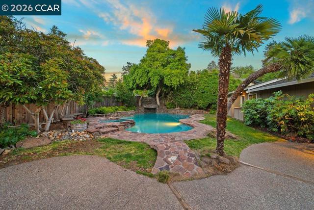 This beautifully refreshed single level home showcases stylish upgrades and thoughtful design at every turn. New paint and carpeting are complemented by designer-selected colors, updated lighting, and a striking custom stonework fireplace that anchors the main living space, creating a warm yet elevated living experience. The spacious primary suite offers a private retreat area along with direct access to the backyard, where serene views and lush landscaping create a peaceful escape. At the heart of the home, the kitchen features a breakfast bar and opens seamlessly to the family room and dining area, ideal for everyday living and effortless entertaining. Step outside to a truly standout backyard designed for enjoyment, complete with beautiful landscaping, a sparkling pool, cascading waterfall, unique cave feature, and spa, your own private oasis. Features a three car garage. Ideally situated on a quiet court, this home offers both privacy and convenience, just moments from scenic walking trails, a nearby golf course, and top-rated schools.