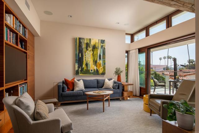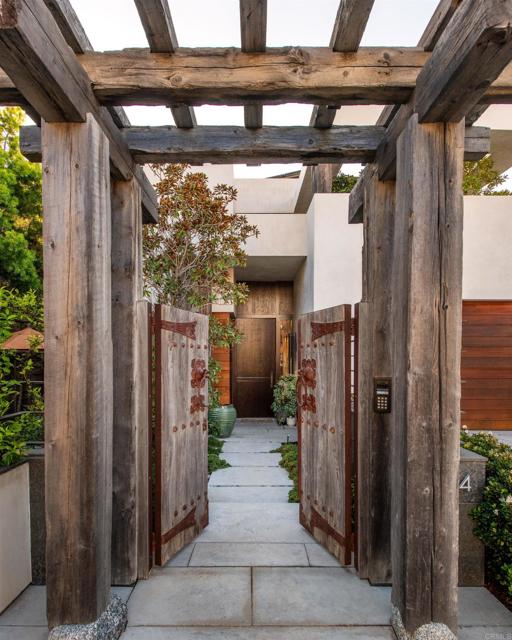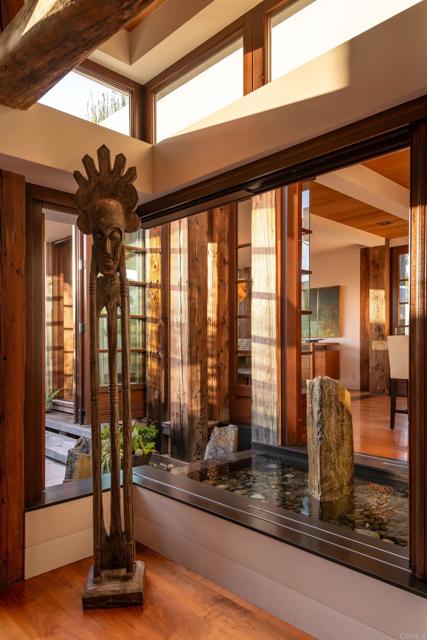 Come live the La Jolla lifestyle in this ocean view architectural masterpiece! A rare fusion of refined architecture, natural materials, and tranquil design, this exceptional ocean-view residence is a work of art that graced the cover of San Diego Home and Garden magazine. Thoughtfully designed by Laura DuCharme Conboy to engage the senses, the home blends contemporary luxury with timeless craftsmanship and Zen-inspired serenity. Just inside the gates is a Japanese garden designed by Dennis Otsuji, one of the original Japanese Friendship Garden designers, creating a peaceful, meditative backdrop that elevates everyday living. Throughout the home, natural walnut, flamed basalt, and stone surfaces are complemented by vintage posts and beams, delivering warmth, texture, and authenticity. The residence features custom-built cabinetry throughout, Mahogany Albertini Italian windows, and seamless indoor-outdoor flow. Entertain effortlessly with an 11-zone audio system, video switching, Control4 home automation, and programmable scene lighting. The gourmet kitchen is equipped for the discerning host, featuring a full-height Sub-Zero wine refrigerator with dual beverage drawers, a built-in Miele espresso and coffee system, and premium finishes throughout. Comfort meets ambiance with an automatic gas indoor fireplace, while outdoor living is enhanced by a gas fire feature, tranquil water fountain, and outdoor shower. Ascend to the large (over 400 square feet) roof deck, where white water views and a 180-degree ocean vista awaits. The deck is served by a dumb waiter from the kitchen below and has a built-in gas barbecue, counter, and sink, making it the ultimate entertaining destination. Additional outdoor spaces include second-floor decks off the den and primary bedroom, both offering privacy and ocean views, as well as a private space outside the primary bathroom, all thoughtfully illuminated by automatic low-voltage outdoor lighting. Sustainability meets luxury with solar electric panels, completing a home that is as forward-thinking as it is breathtaking. This home, built by Wardell Builders, is not just a residence—it’s a carefully crafted coastal retreat!