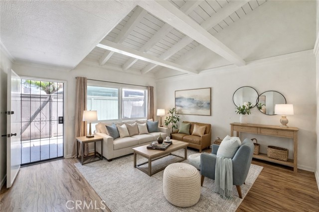Unique two-story townhome in a private and quiet location, view of trees and greenbelt. Featuring a 2-car garage, washer and dryer hook-ups and updated kitchen. Fresh paint thoughout, spacious living room with high ceilings creates an open and airy feel. Updated kitchen offers granite countertops and abundant cabinet space for extra storage. Large master bedroom includes a walk-in closet and private balcony. 2-car garage with direct access and dedicated laundry area. Enjoy a large private patio-perfect for BBQs and entertaining family and friends. Located near Fountain Valley, Costa Mesa, and South Coast Plaza, with easy access to shopping, dining, and major freeways. HOA covers water and trash. A great opportunity-this property will not last!