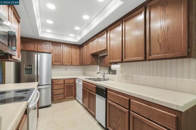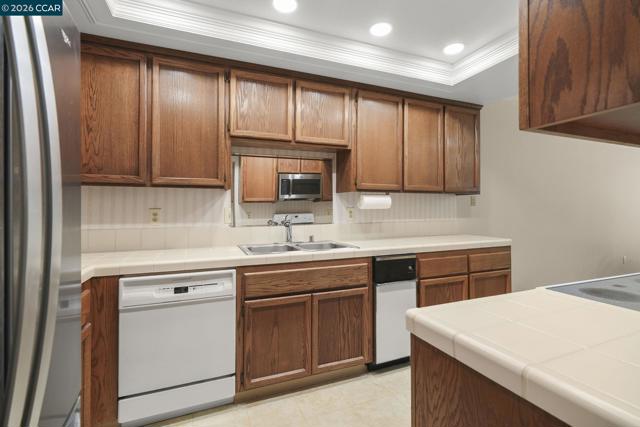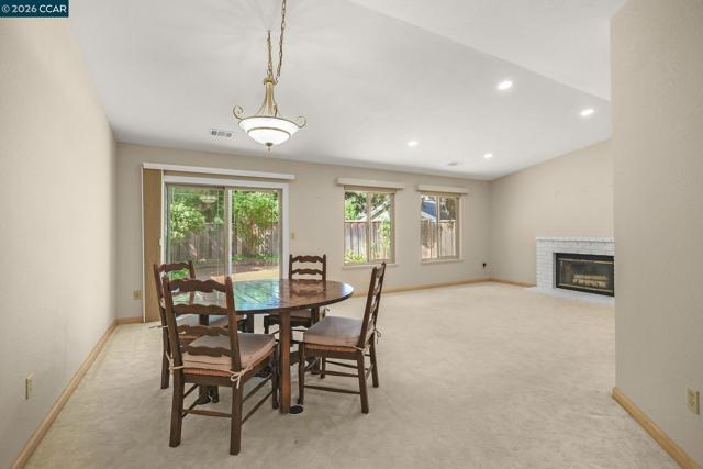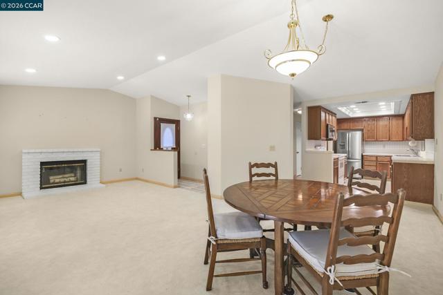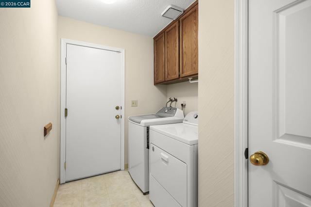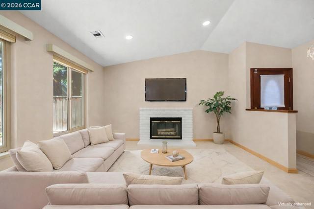 Rare 1 story duet townhouse in an amazing, well run community. Common area features a path along the greenbelt next to creek that runs through the neighborhood. Large private patio with no backyard neighbors and a view looking to the hills behind. Conveniently located next to the pool and clubhouse. Great Bones w/some updates, lovingly cared for by a long term owner. Upgrades and amenities include vaulted ceilings, fireplace & loads of windows that provide light and volume in the living space, making the 1398 SF feel bright & big. Recessed LED lights, updated dual pane windows and wood floors in the primary bedroom and hallway. Remote control window coverings. Recently painted inside (2024 and never lived in) and out. Convenient inside laundry space with additional storage cabinets, washer & dryer included. Tons of built in storage units in the garage and 220 power outlet for garage hobby/workshop or electric car power (confirm suitability)