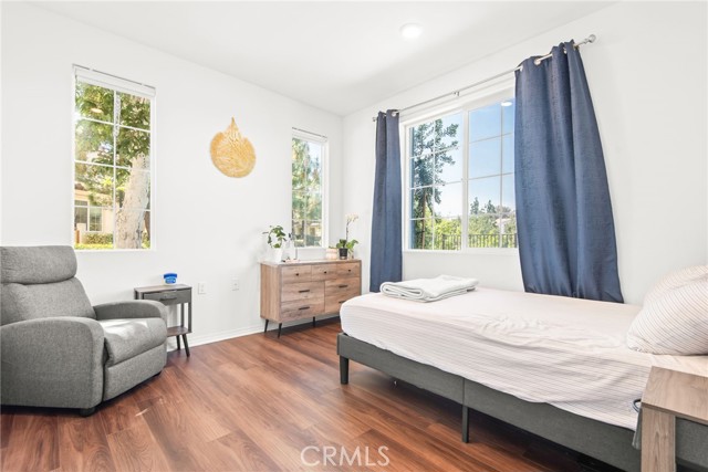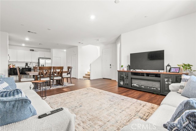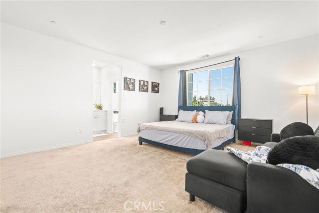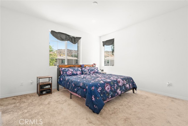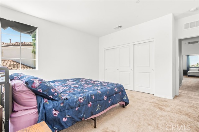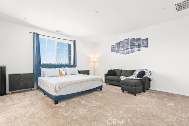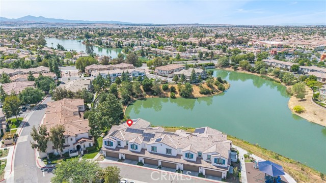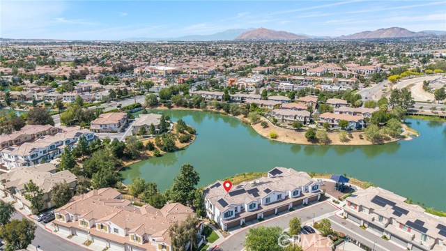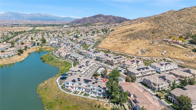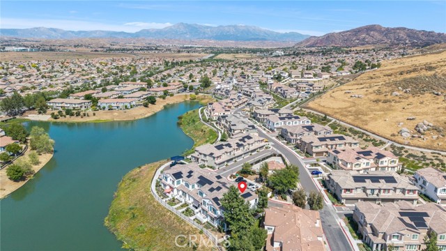 Welcome to this beautifully designed 2024-built Spanish Colonial residence located in a gated Moreno Valley community with scenic lake views. This spacious 4 bedroom, 3.5 bathroom home offers 2,116 sq ft of modern living with thoughtful upgrades and an open, functional layout. Situated on a desirable corner unit, the home features a 2-car garage, paid-off solar panels, and a private courtyard entry that adds charm and outdoor living space. Inside, the open floor plan is filled with natural light and enhanced by upgraded flooring, recessed lighting, and a modern kitchen with stainless steel appliances, a large island peninsula, pantry and ample storage. The layout is ideal for flexibility and comfort with two owner’s suites upstairs, both featuring double sink vanities, while the primary suite offers beautiful lake views and walk in closet. The other suite has views of the mountains and pool. A downstairs flex room can easily function as a bedroom, office, or guest suite, also enjoying views of the lake from the living area. Residents enjoy resort-style amenities including a clubhouse, pool/spa, walking trails with lake views, and a community park just steps away. The location is exceptionally convenient—within walking distance to Moreno Valley College, Lasselle Elementary, shopping, and dining, and just minutes to Riverside University Health System Medical Center, Kaiser Permanente, and Lake Perris Recreation Area. Enjoy beautiful sunsets over the lake, modern energy efficiency, and the convenience of living in one of Moreno Valley’s newest communities.