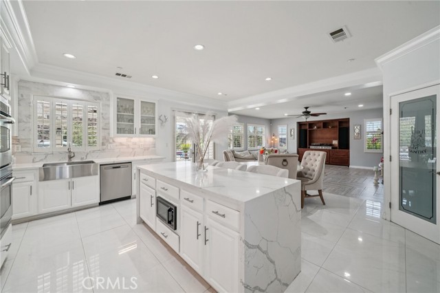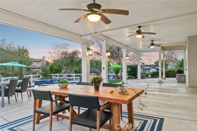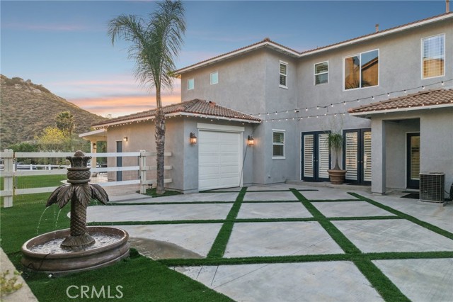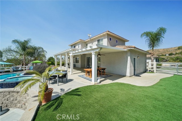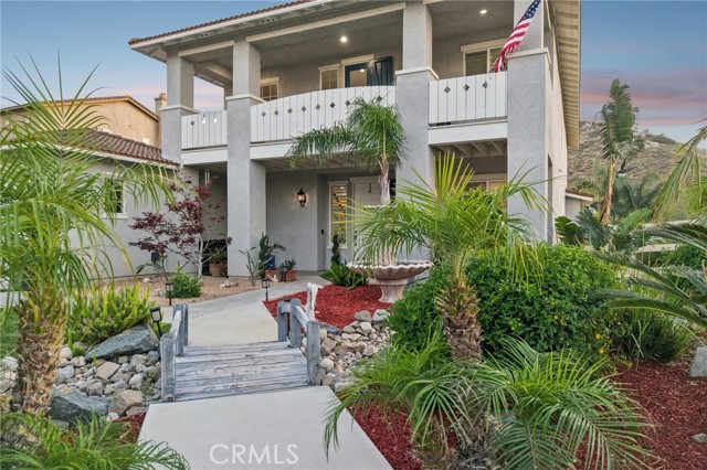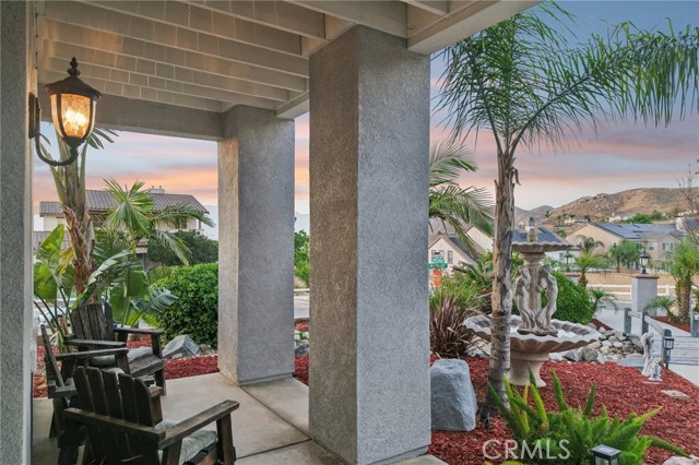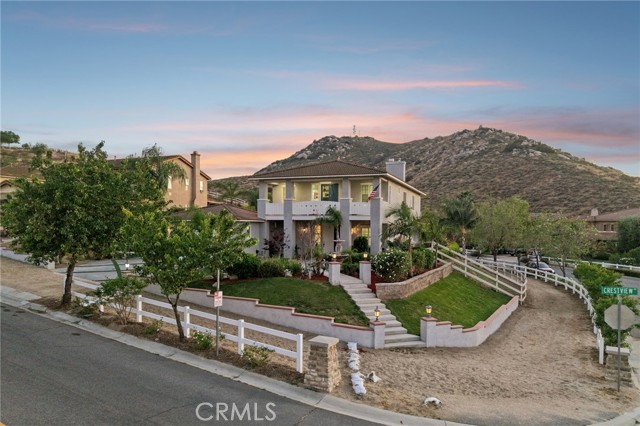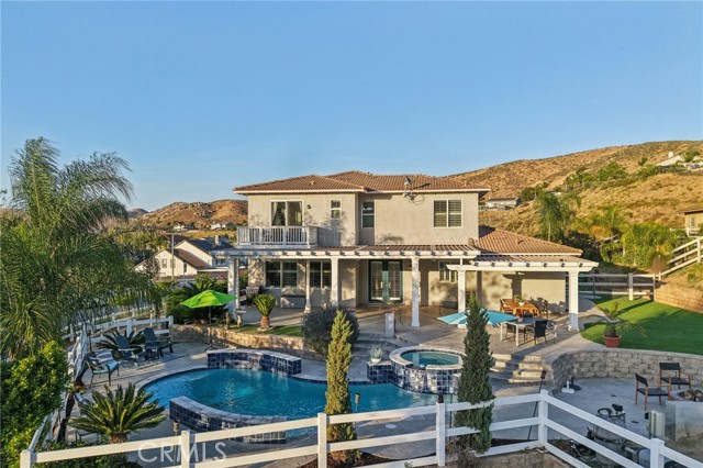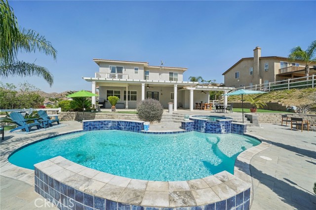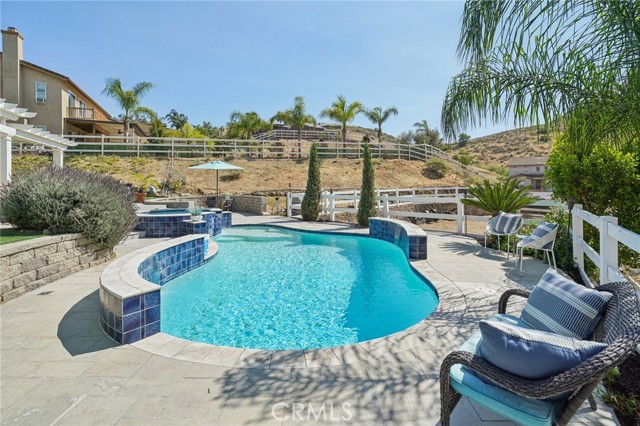 Welcome to this gorgeous luxury horse property in Norco, ideally situated on a corner lot within an exclusive cul-de-sac of just eight homes. Set on a fully fenced ½-acre lot, this property offers privacy, space, and breathtaking views of the surrounding hills. Designed for both comfort and entertaining, the backyard features a sparkling pool and spa with upgraded heater, built-in fire pit, and a spacious covered Alumawood patio. Extensive landscaping enhances the outdoor experience, while upper-level balconies provide the perfect place to take in the views. Inside, the home showcases elegant finishes and a functional layout, including formal living and dining rooms, along with an open-concept kitchen, dining, and family room. The family room features a cozy fireplace, and French doors from the dining area lead to the outdoor living space. The remodeled kitchen is a standout with a stunning Carrara marble waterfall island, full backsplash, pantry, and newer range with vent hood. Additional upgrades include recessed lighting, wood shutters, and fresh exterior paint. The primary suite offers a true retreat with a dual-sided fireplace, an oversized walk-in closet, and a beautifully updated bathroom with new flooring, jetted tub, and fresh paint. A junior suite with en-suite bath and wainscoting adds flexibility, along with a main-level bedroom for guests or multigenerational living. Additional highlights include dual garages, a laundry room with sink, Ring doorbell, and a bi-level lot ideal for equestrian use or expanded outdoor living. This exceptional property combines luxury, functionality, and the sought-after Norco lifestyle.