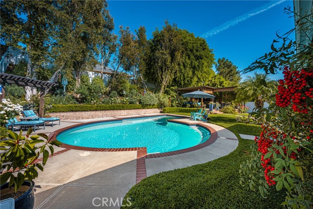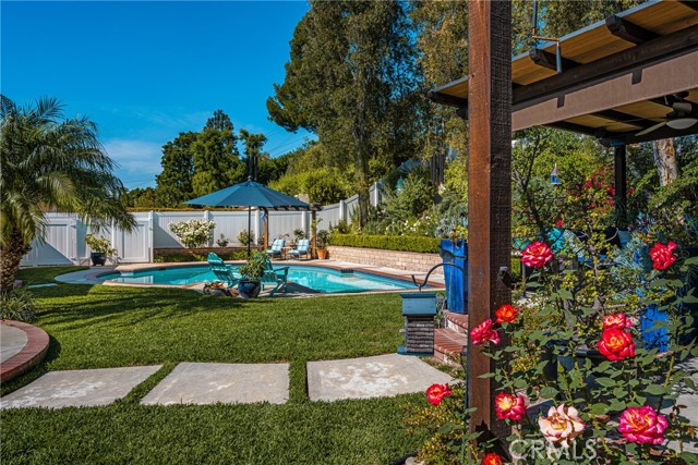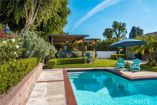 Welcome to this beautifully maintained home offering exceptional indoor-outdoor living in a highly desirable setting. The tranquil front yard welcomes you with a serene pathway, charming seating area, and a soothing fountain surrounded by lush, thoughtfully designed landscaping — creating a garden retreat and inviting first impression. Inside, the inviting living room is filled with natural light and features large picture windows with a stylish fireplace that serves as a warm focal point. The open floor plan allows for effortless flow between living spaces, ideal for both comfortable everyday living and entertaining. The spacious kitchen opens seamlessly to the dining area and showcases a large granite center island, abundant counter space, and ample cabinetry, making it the heart of the home. Four bedrooms and remodeled bathrooms add modern appeal, while multiple rooms enjoy peaceful views of the lush outdoor surroundings. The backyard is designed for relaxation and entertaining alike, featuring a sparkling pool, grassy lawn, and mature landscaping that provides exceptional privacy. A covered patio creates an inviting outdoor living space complete with a sitting area and TV — perfect for year-round enjoyment, gatherings with friends, or relaxing poolside in a resort-like setting. Ideally located on a well-regarded, wide tree-lined street, this home offers a wonderful neighborhood atmosphere while combining comfort, style, and privacy in one exceptional property. Close proximity to award winning schools - Arroyo Elementary, Hewes Middle School and Foothill High School.