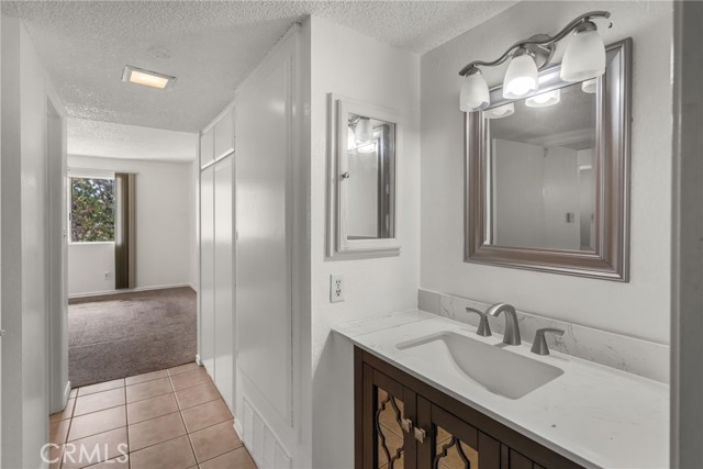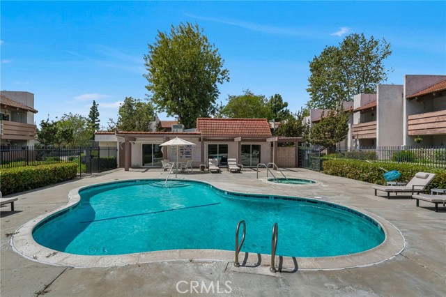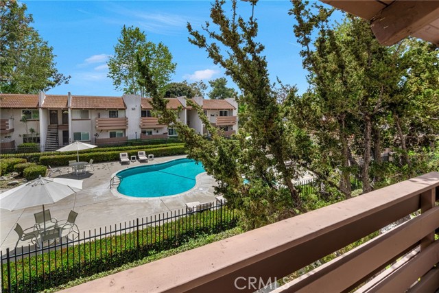 Welcome home! This move-in ready second-floor unit offers the privacy of having no neighbors above and beautiful pool views from the primary suite. The freshly painted, open-concept living space is complemented by stainless steel appliances, a walk-in closet, and central heating and air conditioning. A designated garage parking space adds everyday convenience. Ideally located between three major freeways, this home provides easy access to nearby parks, restaurants, and schools. The well-maintained community features a variety of amenities, including a pool and spa, community room, outdoor shower, tennis courts, and more making it a perfect place to live and relax.