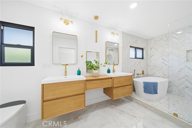 Exquisitely reimagined 5 bedroom, 5 bath pool and spa residence (just in time for Summer) that offers an unparalleled living experience, combining the allure of a "brand new" home with the established charm of one of Orange County’s most coveted communities. This home has undergone a comprehensive top-to-bottom remodel that focused on both aesthetic elegance and structural integrity and multistage life solutions with a truly exceptional forward looking floor plan. Step into an expansive open-concept layout defined by soaring ceilings, custom millwork, and premium flooring. A culinary masterpiece, the kitchen boasts custom cabinetry, high-end quartz countertops and professional-grade stainless steel appliances. Bathrooms have been reinvented as private retreats with designer tile work, custom vanities, and contemporary fixtures. Essential systems including HVAC, electrical, and plumbing have been updated, providing long-term reliability and modern efficiency. Off the living areas are the primary bedroom suite that features great light from a large door that allows for pool deck access and a resort level ensuite. A second ensuite bedroom, a guest bath, a laundry room and garage access complete the lower level. Upstairs is a third ensuite bedroom, two guest bedrooms and an updated guest bath. With great curb appeal the exterior features a fresh architectural aesthetic with professional landscaping and a "grand entrance" designed to make a lasting first impression. Out back is an expansive pool and spa patio with security fencing, a wrap around brick and brick lined concrete patio and grassy lawn spaces. Together these provide ample space to play or entertain in privacy and security. Living in Tustin means enjoying a rare blend of historic character and urban convenience. Residents have access to the A+ rated Tustin Unified School District, which consistently ranks among the top 50 districts in California. From the historic charm, and Michelin-mentioned eateries, of Old Town Tustin to the modern retail escapes of The Market Place and The District, everything needed is just minutes away. Experience a vibrant local culture through seasonal events like the Tustin Art Walk, the Tustin Street Fair & Chili Cookoff, Broadway in the Park, and the beloved Tiller Days carnival. This home isn't just a place to live, it's an invitation to settle into a "forever" residence in a city known for its safety, beauty, and enduring charm. Welcome home.
