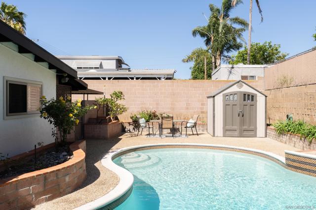 For the First Time in Over 60 Years - A Rare Clairemont Gem! On the market for only the second time since 1962, this 4-bed, 2-bath pool home sits on one of Clairemont’s most desirable streets. Lovingly cared for and thoughtfully updated over the decades, it blends timeless charm with modern comfort. Hardwood flooring runs throughout, creating a warm welcome the moment you enter. The light-filled main living area with recessed lighting flows into a bonus living area and sunroom, ideal for a family room, playroom, media room, or home office. The updated kitchen features white shaker cabinetry, quartz countertops, stainless steel appliances, recessed lighting, and a breakfast bar with custom built-in seating. A peek-a-boo window connects the kitchen to the sunroom. Four well-sized bedrooms include an oversized primary suite tucked away as a private retreat with a walk-in closet. The primary bath offers a large soaking Jacuzzi tub, walk-in shower, refinished vanity cabinets, and updated lighting. The private backyard showcases a recently re-plastered 9-ft pool with diving board, pebble-finish decking, and space for lounging and entertaining. An outdoor shed offers potential for a guest casita/ADU, art studio or home office. Recent upgrades include a brand-new A/C system, newer roof, fresh interior and exterior paint, plantation shutters, security doors, and custom stainless-steel mesh security screens. Walking distance to schools, neighborhood shops and restaurants. Home Depot, Target, and the beach are minutes away. Two-car covered carport & driveway provide ample parking.