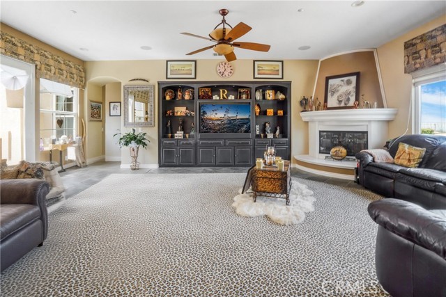 Presenting this stunning home in Alessandro Heights’ Presidio Estates, nestled in the rolling hills of Riverside, offering nearly 4,500 square feet of living space with 5 bedrooms and 5 bathrooms. Magnificent views can be enjoyed from nearly every room in the home. The spacious primary suite features a dual fireplace, and a private retreat, with direct access to the backyard. Additional highlights include 4 fireplaces, and an open kitchen, equipped with a built-in refrigerator, double oven, microwave, and a walk-in pantry. The thoughtfully designed floorplan includes a formal living and dining room, a parlor or piano room, and a private study/office, adorned with beautiful stained-glass windows. The home also offers a large laundry room, a 5-car garage, and a detached guest house (Casita). The detached Casita includes its own bathroom, providing flexibility for guests or extended family. Situated on a more than 1/2 -acre lot (.58 SF), the property features an inviting interior courtyard with its own fireplace, as well as a flagstone-stamped patio slab in the rear yard. The backyard is also pre-plumbed for an outdoor kitchen and the home has fruit trees. This exceptional home offers so much more—truly a must-see. Schedule your private showing today to experience everything it has to offer.