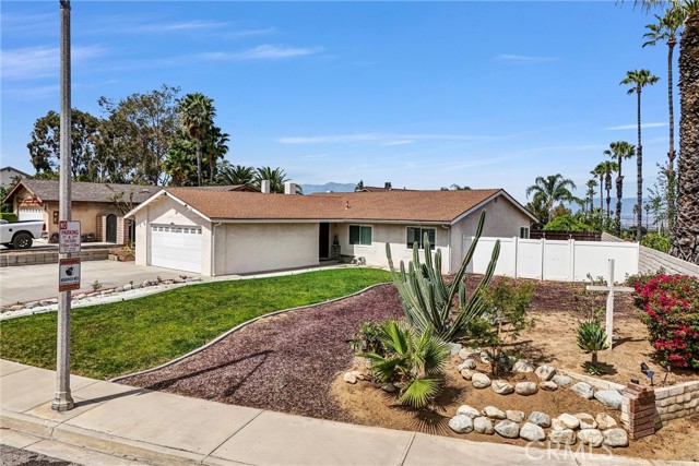 Enjoy the great views of Canyon Crest Community in Riverside. Single level home located on a corner lot with remarkable potential to build an ADU. Three bedroom and two bathrooms home. Wonderful kitchen with open floor plan to the dinning area with multiple newer windows and sliding door that maximizes the natural light making the area very airy and bright. Recessed ceiling can lights. Laminated flooring and upgraded kitchen cabinets. Nuvia Clarity Water filter under kitchen sink. Nuvia Signature Water Refiner for the whole house water softening and conditioning. High ceilings in living room and a fireplace. Convenient laundry room inside the house before the garage. Laminated flooring throughout all the house.Two car garage and extended driveway with plenty space for your RV. Spacious back and side yards perfect for family and friends gatherings, expand the house or add an ADU. Block, wood and vinyl fences all around. Water-saving landscaping decorates the expansive front of the house along with a beautiful grass lawn well maintained. Not far from the University of Riverside, Poly District schools. Close to Canyon Crest Towne Centre, Sycamore Canyon Wilderness Park, Golf Course, Mission Inn and shopping areas. Conveniently located close to 91 Fwy. NO MELLO-ROOS, NO HOA.