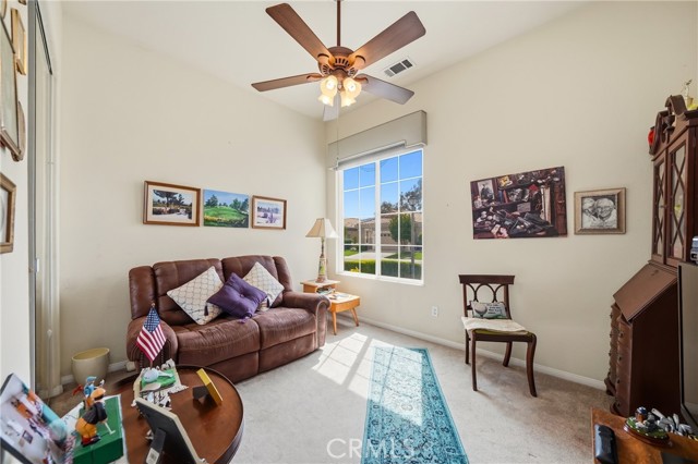 Welcome to 4896 Rolling Hills Ave, a beautifully cared-for single-story home located in the sought-after Sun Lakes Country Club, a gated 55+ community in Banning offering an exceptional active lifestyle. This inviting residence features a thoughtfully designed floor plan with 2 bedrooms, 2 bathrooms, and a versatile den or office space, all filled with natural light and a comfortable flow for everyday living and entertaining. The spacious living and dining areas connect seamlessly to a well-appointed kitchen, creating a warm and functional heart of the home. Tasteful upgrades and finishes throughout add character and style, while the low-maintenance landscaping in both the front and backyard provides a peaceful outdoor setting perfect for relaxing or hosting guests. A two-car attached garage adds convenience, and the overall layout is ideal for those seeking ease and simplicity without sacrificing space. Residents of Sun Lakes Country Club enjoy access to resort-style amenities including golf courses, clubhouses, fitness centers, pools, tennis and pickleball courts, dining options, and a wide variety of social activities, making this home not just a place to live, but a lifestyle to enjoy.