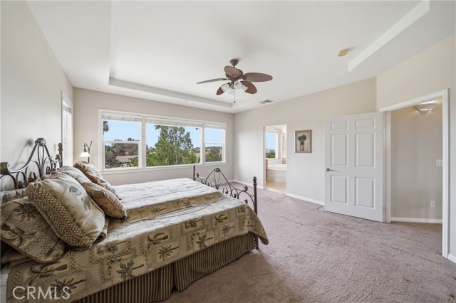 Located in the gated community of Rancho Valencia, this spacious home offers an open and functional layout designed for comfortable living and entertaining. The expansive family room flows seamlessly into the kitchen, featuring a large center island, granite countertops, a kitchenette area, and a new double oven. From the main living areas, enjoy beautiful mountain views that create a serene backdrop.Formal living and dining rooms provide additional space for gatherings and special occasions. The main floor includes a bedroom and full bathroom—ideal for guests or multigenerational living—along with a flexible bonus room perfect for an office, playroom, or home gym.Upstairs, the generous primary suite offers a private retreat with an additional sitting area that can serve as a study, nursery, or be incorporated to further expand the space.The backyard features a covered patio, ideal for outdoor dining or relaxing while taking in the mountain views. Residents also enjoy access to the community’s citrus groves beautifully maintained by the HOA, creating a unique setting where you can enjoy the charm of the orchards without the upkeep. Mature trees, fresh citrus, and scenic surroundings add to the peaceful atmosphere that makes this home and neighborhood truly special. The property also includes gated RV parking, providing added convenience and flexibility.