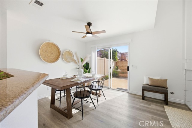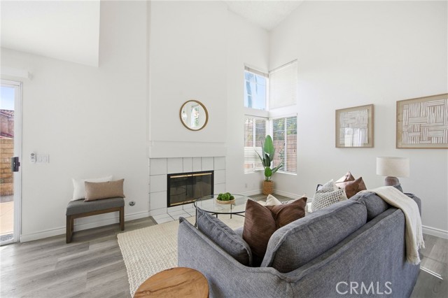Welcome to this stunning 3-bedroom, 2.5-bathroom townhouse in one of Corona's most sought-after communities, Cortina! Conveniently located near the 15 and 91 freeways, this home offers easy access to shopping, dining, and entertainment while being tucked away in a peaceful neighborhood. Step inside to brand-new luxury vinyl plank (LVP) flooring and fresh paint, creating a modern and inviting atmosphere. The high ceilings in the living room enhance the sense of space and grandeur, while ample natural light fills the open floor plan. A cozy fireplace in the living room adds warmth and charm, perfect for relaxing evenings. The dining area opens to a private enclosed backyard, offering a great space for outdoor dining, entertaining, or simply unwinding. Upstairs, you'll find three spacious bedrooms, including a primary suite with its own bathroom, and an additional full bathroom for convenience. Enjoy access to a resort-style community with a sparkling pool and other fantastic amenities, making this the perfect place to call home.