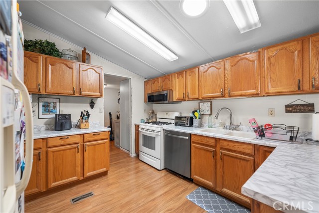 Villa Corona Mobile Home Community: what a great place to live! On offer is a spacious double-wide mobile home unit consisting of 1,248 sq. ft. of comfort that features 3 Bedrooms and 2 recently upgraded full Bathrooms. This gorgeous home comes with all appliances that include Stove, Microwave, Refrigerator, Dishwasher and Washer & Dryer. There are ceiling fans throughout, central air, a 2 car detached garage with storage and a private patio! The backyard also includes a Lemon tree for your enjoyment. Talk about amenities, the renovated clubhouse includes a lounge area with a fireplace, library, game room, card room, dinning hall with a full kitchen, laundry area, car wash area gym and of course the Pool & Spa! So why look any further? It is all here waiting for you to move in and enjoy!