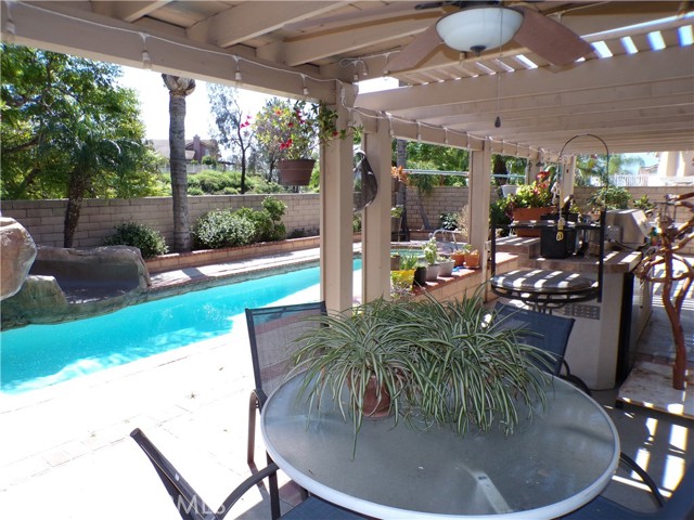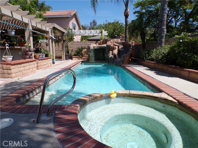 This property is a beautiful well cared for two story home in a wonderful location with access to both the I-15 and the 91 freeways. It features the primary bedroom upstairs with a recent remodel to the primary bathroom with a walk-in shower. Two additional bedrooms upstairs with a Jack and Jill bathroom. The main floor offers one additional bedroom a full bathroom with a newer walk-in style tub and shower. The dinning/living room area has a fireplace. The kitchen has recently undergone a remodel as well, with granite counters and beautiful cabinets. The home has a leased solar system with a 20-year lease, and they are currently in their eleventh year. There is a three-car garage. The backyard is a weekend dream, with a built-in barbeque island overlooking the inground pool and spa. The pool has a rockslide and waterfall feature. This gives you a great reason to just stay home and enjoy family and friends.