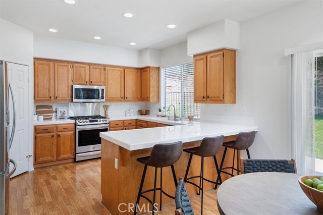 Updated with new interior paint and new carpet, 3 bedroom plus loft home featuring a 3 car attached garage with pull through access and a large private backyard, and located in the highly desirable Stone Crest community in Santa Clarita, this move in ready home offers 1825 sq ft on a spacious 9331 sq ft lot. Owned by the original owners and meticulously maintained, the home features a smartly designed kitchen with stainless steel appliances and solid wood cabinetry that overlooks the dining area and family room with soaring ceilings and a cozy fireplace, creating an open and functional layout for everyday living and entertaining. A high end dual zoned HVAC system provides efficient heating and cooling throughout. Upstairs, the loft offers a versatile space that can be used as an office, playroom, or easily converted into a 4th bedroom. The primary suite includes a walk in closet and an attached bathroom with dual sinks. The laundry room is conveniently located inside and features additional storage and a long counter for added functionality. The backyard is lush and private with ample space to relax or entertain. Additional highlights include no HOA, no Mello Roos, and a location in Santa Clarita that is both freeway convenient and tucked away within the community.