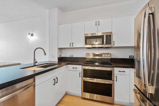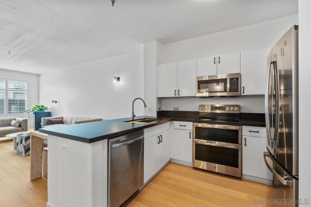 Welcome to The Mills in the heart of desirable Cortez Hill—where historic charm meets modern downtown living. This spacious recently updated home offers a desirable floor plan with abundance of natural lighting and a quiet, private setting within the community. Features include a modern well-appointed kitchen, in-unit laundry, central A/C, and ample storage. Enjoy your own private patio—perfect for relaxing or entertaining while taking in the peaceful surroundings of this hilltop neighborhood. Stroll along picturesque, jacaranda lined streets and experience the unique balance of serenity and city living. Residents enjoy access to the fitness center, secured underground parking with 8' 2" clearance accommodating taller vehicles, and the iconic Mills House clubhouse. VA and FHA approved, this community offers exceptional accessibility. Ideally located just minutes from Balboa Park, Little Italy, the Gaslamp Quarter, Petco Park, and the waterfront—this is downtown living with a neighborhood feel.