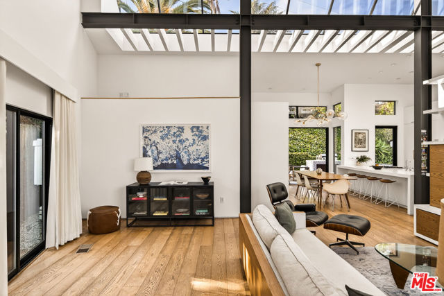 This bespoke architectural residence is defined by soaring 30-foot ceilings, expansive glass, and an extraordinary sense of light, volume, and warmth. Thoughtfully designed with a strong connection to the outdoors, the home pairs striking scale with detail driven craftsmanship and high-end finishes. At the heart of the home, a chef's kitchen anchors the open layout, while oversized skylights and expansive sliding doors create a seamless indoor-outdoor flow. The home's 5 bedroom, 3 bathroom layout is both functional and inspiring, with generous built-in storage perfectly integrated throughout. Outside, multiple inviting spaces include an outdoor lounge with a built-in fire pit, built-in barbecue, jacuzzi, and a hillside deck with sweeping views. Within the Mar Vista School District and set on one of Mar Vista's most sought after streets, this is more than just a beautifully built house - it is a home with heart, soul, and exceptional quality. *The only open houses will be on 4/25, 4/26 and 4/28*